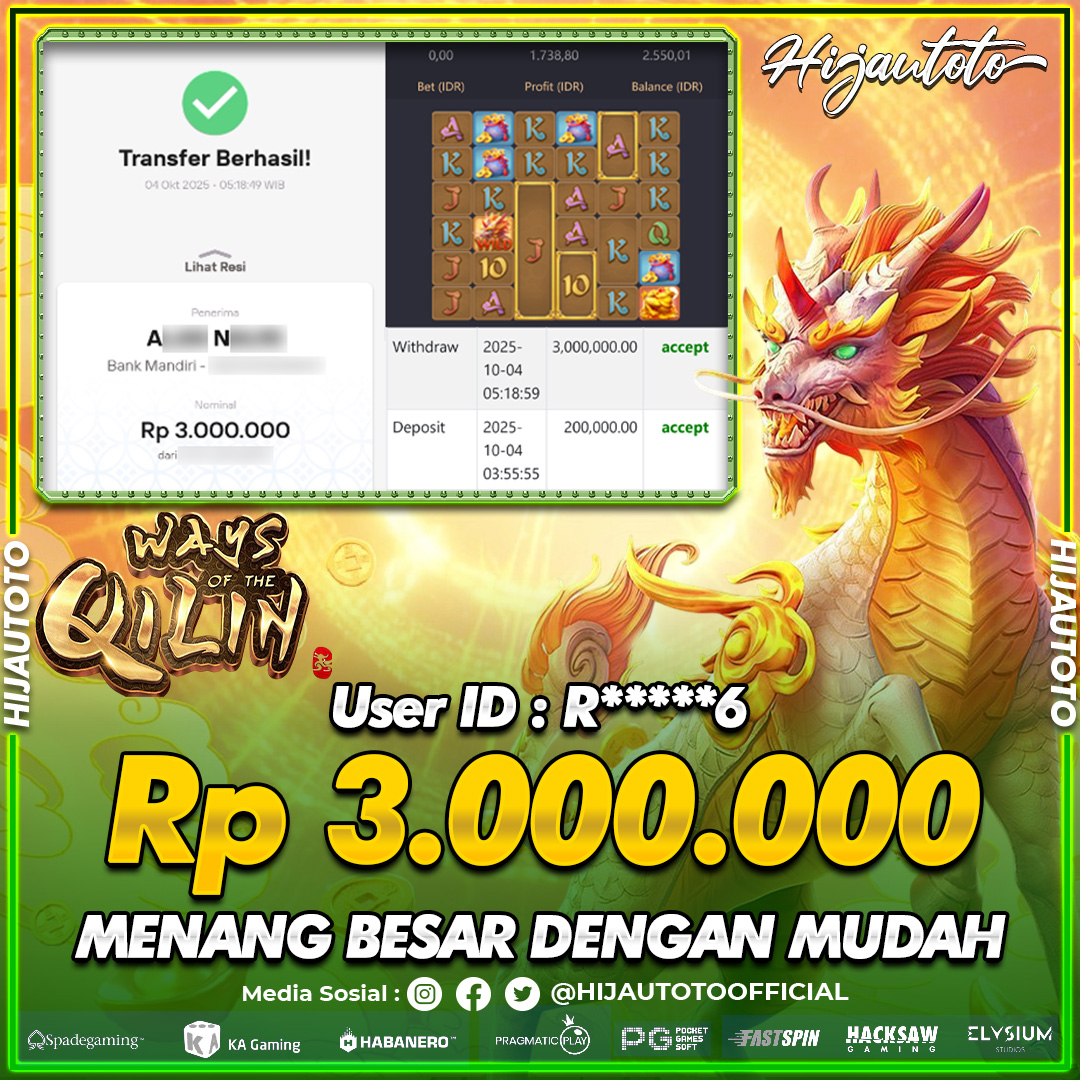 Selamat datang di HIJAUTOTO, tempatnya seru-seruan dan cuan besar! Mulai main cukup dengan modal Rp5.000 aja, taruhan super murah dari Rp100 perak! Mau main slot yang penuh warna? Atau togel dari 20 pasaran paling hits? Atau mungkin tembak ikan yang bikin deg-degan? Tenang, ada juga taruhan bola, sabung ayam, dan live casino yang bikin suasana makin hidup! Daftar sekarang dan dapetin bonus new member 100% langsung, biar modalmu makin tebal. Deposit gampang banget, bisa pakai QRIS, dan kalau butuh bantuan, customer service kita siap 24 jam nonstop. Jadi, tunggu apa lagi? Yuk, gabung dan bawa pulang kemenangannya cuma di HIJAUTOTO!
