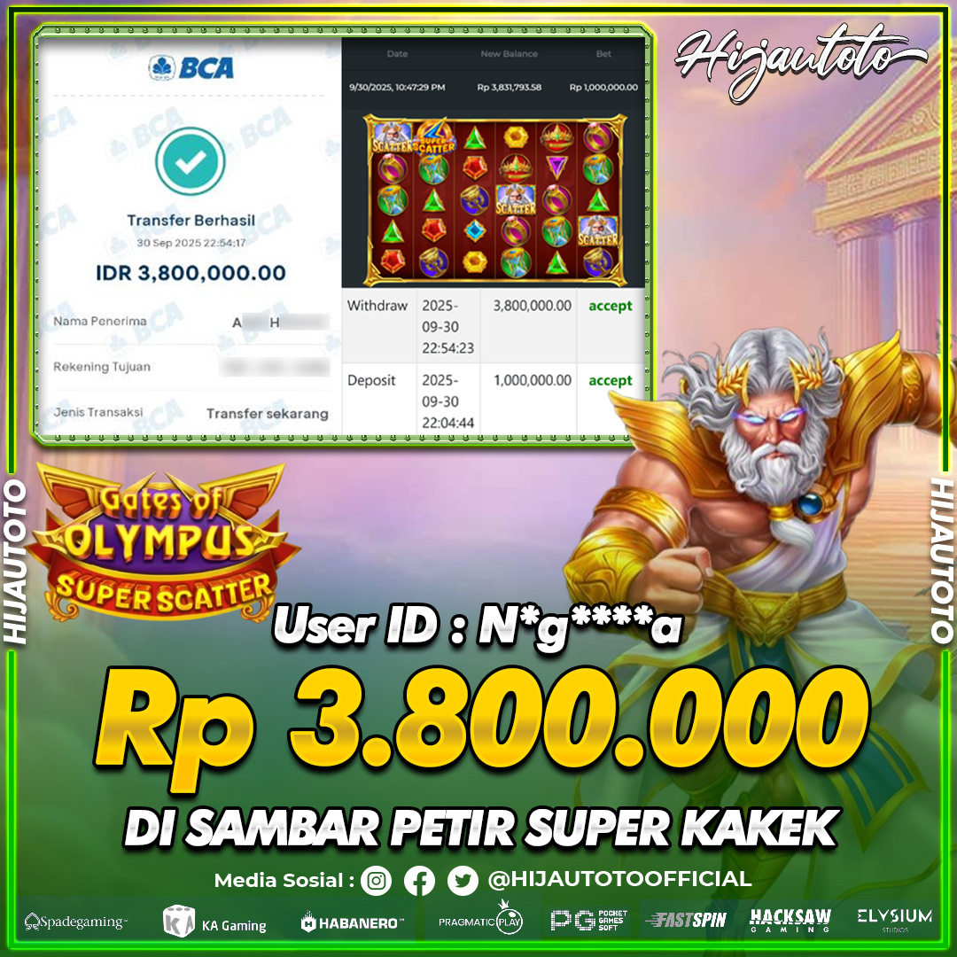 Karena berhasil memenangkan Rp.Rp.2.500.000 dari permainan seru SLOT GATES OF OLYMPUS SUPER SCATTER di HIJAUTOTO! πŸ’°πŸ’Έ