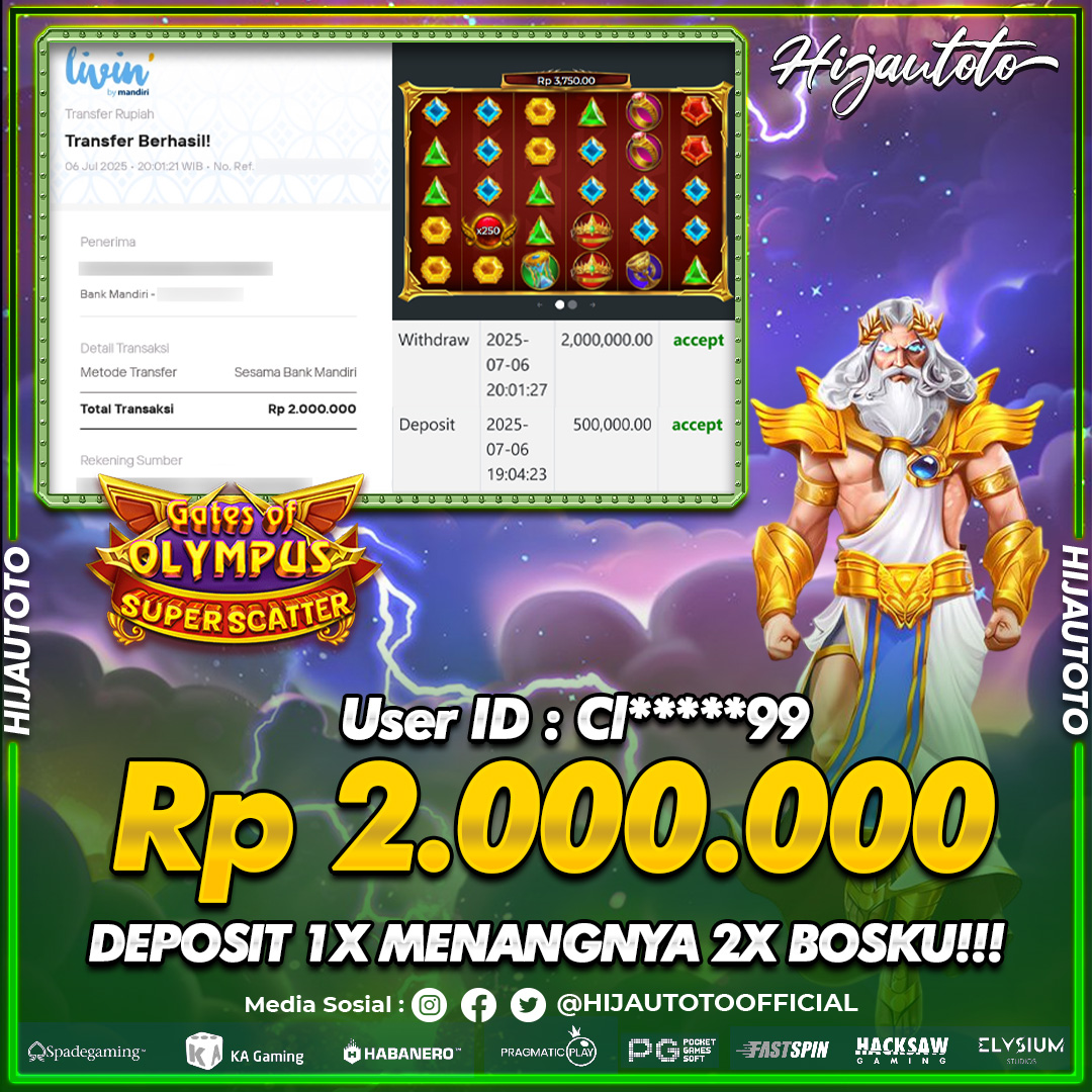 Selamat Kepada Member HIJAUTOTO CI*****99 Telah Jackpot Di SLOT GATES OF OLYMPUS SUPER SCATTER