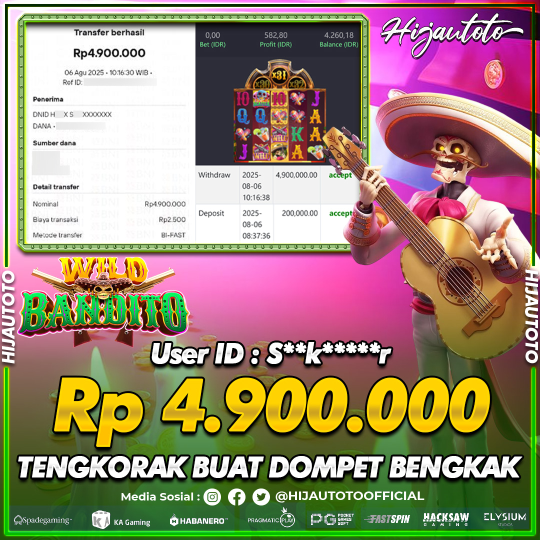 Selamat datang di HIJAUTOTO, tempatnya seru-seruan dan cuan besar! Mulai main cukup dengan modal Rp5.000 aja, taruhan super murah dari Rp100 perak! Mau main slot yang penuh warna? Atau togel dari 20 pasaran paling hits? Atau mungkin tembak ikan yang bikin deg-degan? Tenang, ada juga taruhan bola, sabung ayam, dan live casino yang bikin suasana makin hidup! Daftar sekarang dan dapetin bonus new member 100% langsung, biar modalmu makin tebal. Deposit gampang banget, bisa pakai QRIS, dan kalau butuh bantuan, customer service kita siap 24 jam nonstop. Jadi, tunggu apa lagi? Yuk, gabung dan bawa pulang kemenangannya cuma di HIJAUTOTO!
