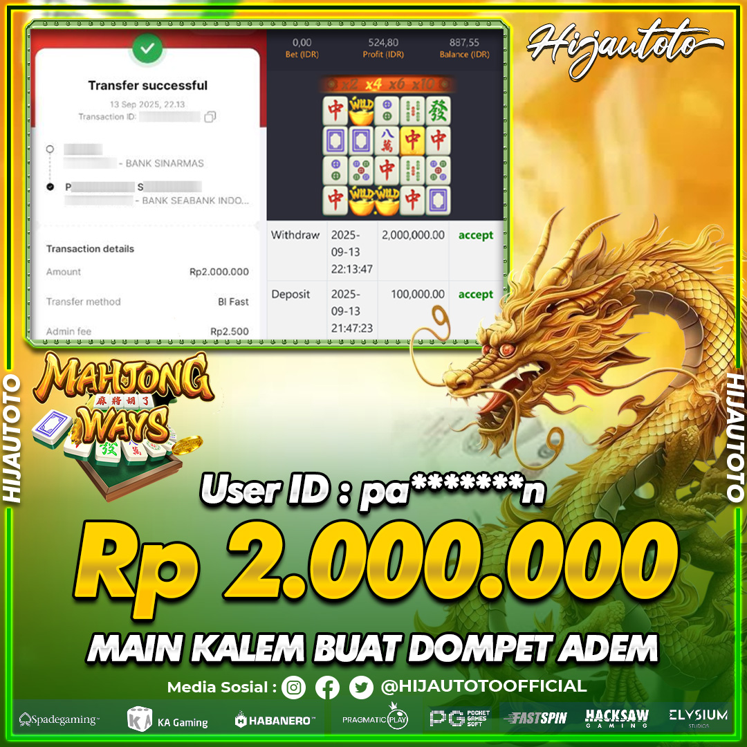 Selamat datang di HIJAUTOTO, tempatnya seru-seruan dan cuan besar! Mulai main cukup dengan modal Rp5.000 aja, taruhan super murah dari Rp100 perak! Mau main slot yang penuh warna? Atau togel dari 20 pasaran paling hits? Atau mungkin tembak ikan yang bikin deg-degan? Tenang, ada juga taruhan bola, sabung ayam, dan live casino yang bikin suasana makin hidup! Daftar sekarang dan dapetin bonus new member 100% langsung, biar modalmu makin tebal. Deposit gampang banget, bisa pakai QRIS, dan kalau butuh bantuan, customer service kita siap 24 jam nonstop. Jadi, tunggu apa lagi? Yuk, gabung dan bawa pulang kemenangannya cuma di HIJAUTOTO!