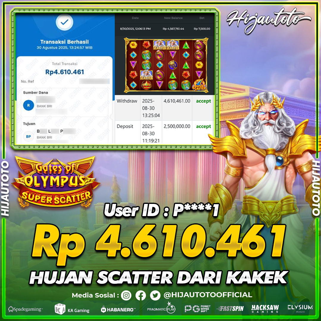 Cuma di HIJAUTOTO, tempat paling AMAN, CEPAT, & TERPERCAYA buat pecinta game SLOT GATES OF 0LYMPUS SUPER SCATTER!