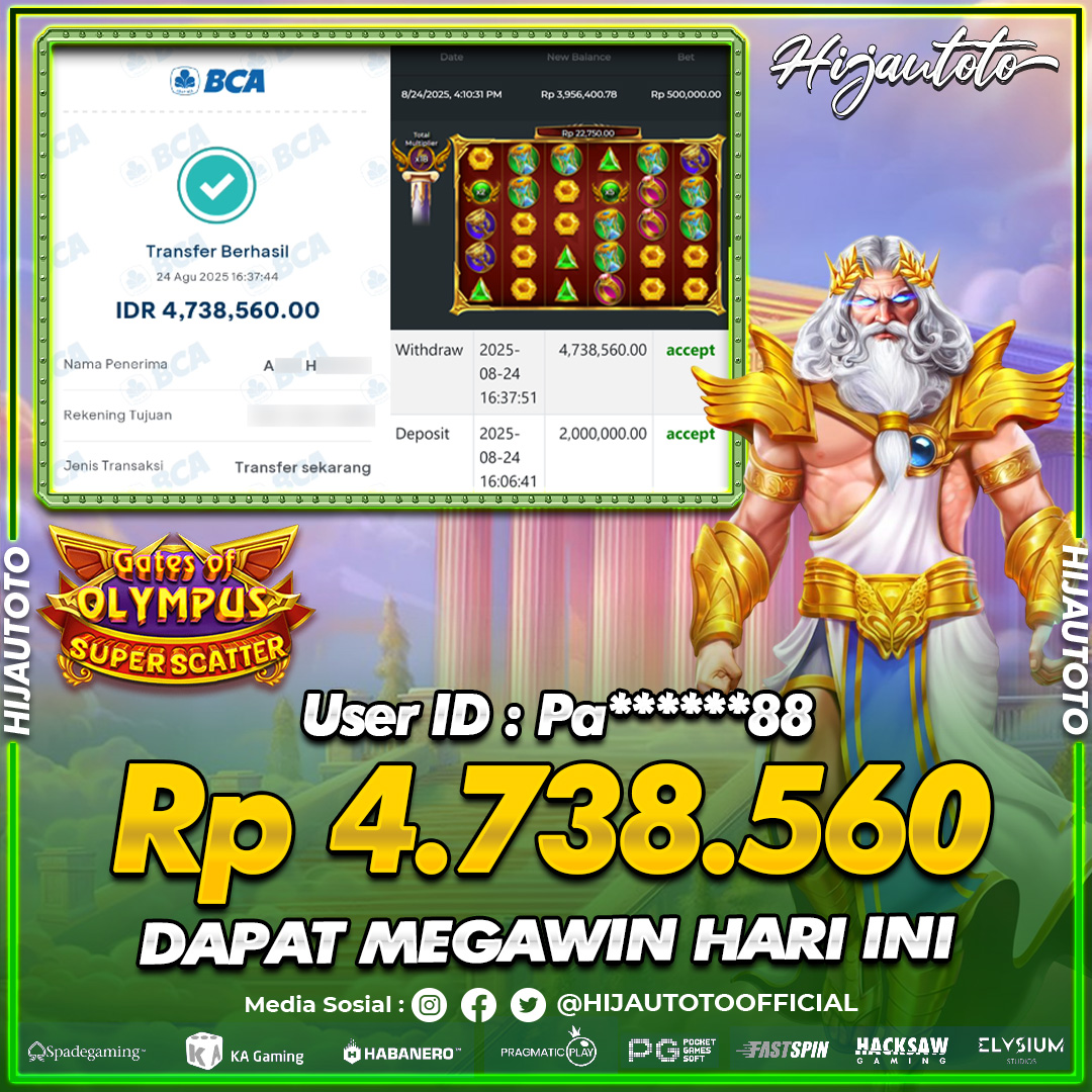 Selamat datang di HIJAUTOTO, tempatnya seru-seruan dan cuan besar! Mulai main cukup dengan modal Rp5.000 aja, taruhan super murah dari Rp100 perak! Mau main slot yang penuh warna? Atau togel dari 20 pasaran paling hits? Atau mungkin tembak ikan yang bikin deg-degan? Tenang, ada juga taruhan bola, sabung ayam, dan live casino yang bikin suasana makin hidup! Daftar sekarang dan dapetin bonus new member 100% langsung, biar modalmu makin tebal. Deposit gampang banget, bisa pakai QRIS, dan kalau butuh bantuan, customer service kita siap 24 jam nonstop. Jadi, tunggu apa lagi? Yuk, gabung dan bawa pulang kemenangannya cuma di HIJAUTOTO!