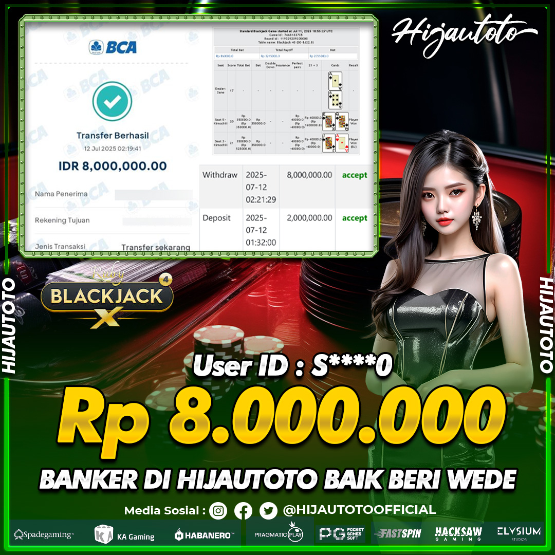 Selamat datang di HIJAUTOTO, tempatnya seru-seruan dan cuan besar! Mulai main cukup dengan modal Rp5.000 aja, taruhan super murah dari Rp100 perak! Mau main slot yang penuh warna? Atau togel dari 20 pasaran paling hits? Atau mungkin tembak ikan yang bikin deg-degan? Tenang, ada juga taruhan bola, sabung ayam, dan live casino yang bikin suasana makin hidup! Daftar sekarang dan dapetin bonus new member 100% langsung, biar modalmu makin tebal. Deposit gampang banget, bisa pakai QRIS, dan kalau butuh bantuan, customer service kita siap 24 jam nonstop. Jadi, tunggu apa lagi? Yuk, gabung dan bawa pulang kemenangannya cuma di HIJAUTOTO!