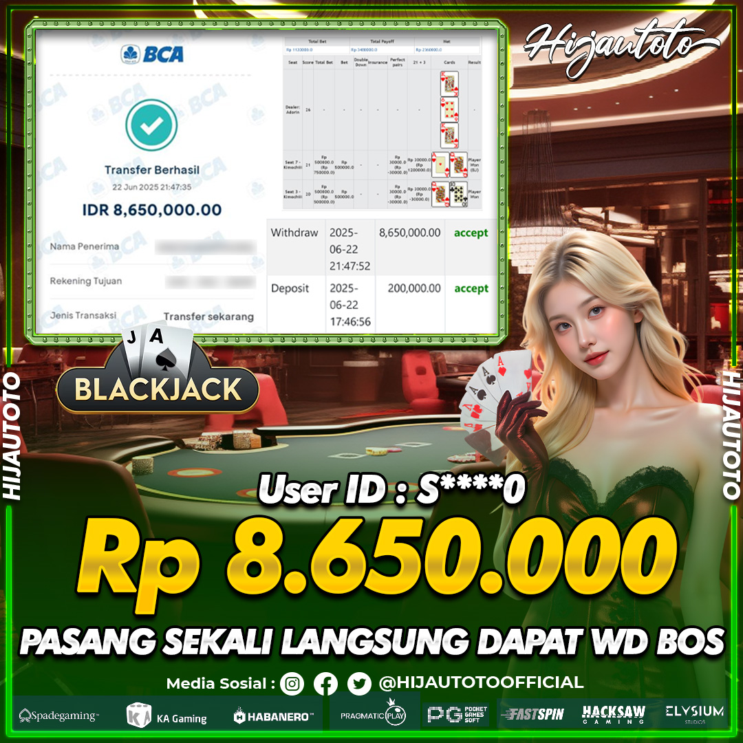 Selamat Kepada Member HIJAUTOTO S**** Telah Jackpot Di LIVE CASINO BLACKJACK