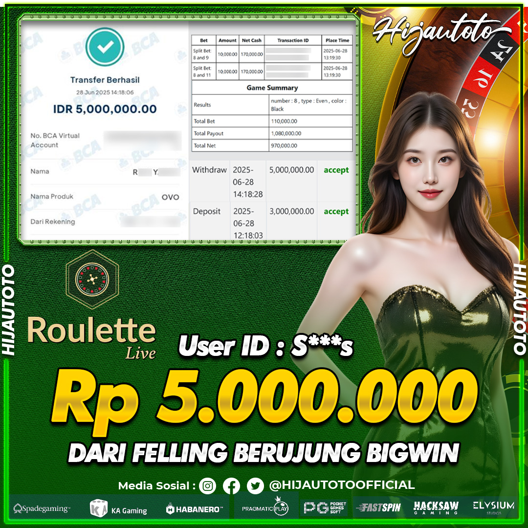 Selamat datang di HIJAUTOTO, tempatnya seru-seruan dan cuan besar! Mulai main cukup dengan modal Rp5.000 aja, taruhan super murah dari Rp100 perak! Mau main slot yang penuh warna? Atau togel dari 20 pasaran paling hits? Atau mungkin tembak ikan yang bikin deg-degan? Tenang, ada juga taruhan bola, sabung ayam, dan live casino yang bikin suasana makin hidup! Daftar sekarang dan dapetin bonus new member 100% langsung, biar modalmu makin tebal. Deposit gampang banget, bisa pakai QRIS, dan kalau butuh bantuan, customer service kita siap 24 jam nonstop. Jadi, tunggu apa lagi? Yuk, gabung dan bawa pulang kemenangannya cuma di HIJAUTOTO!