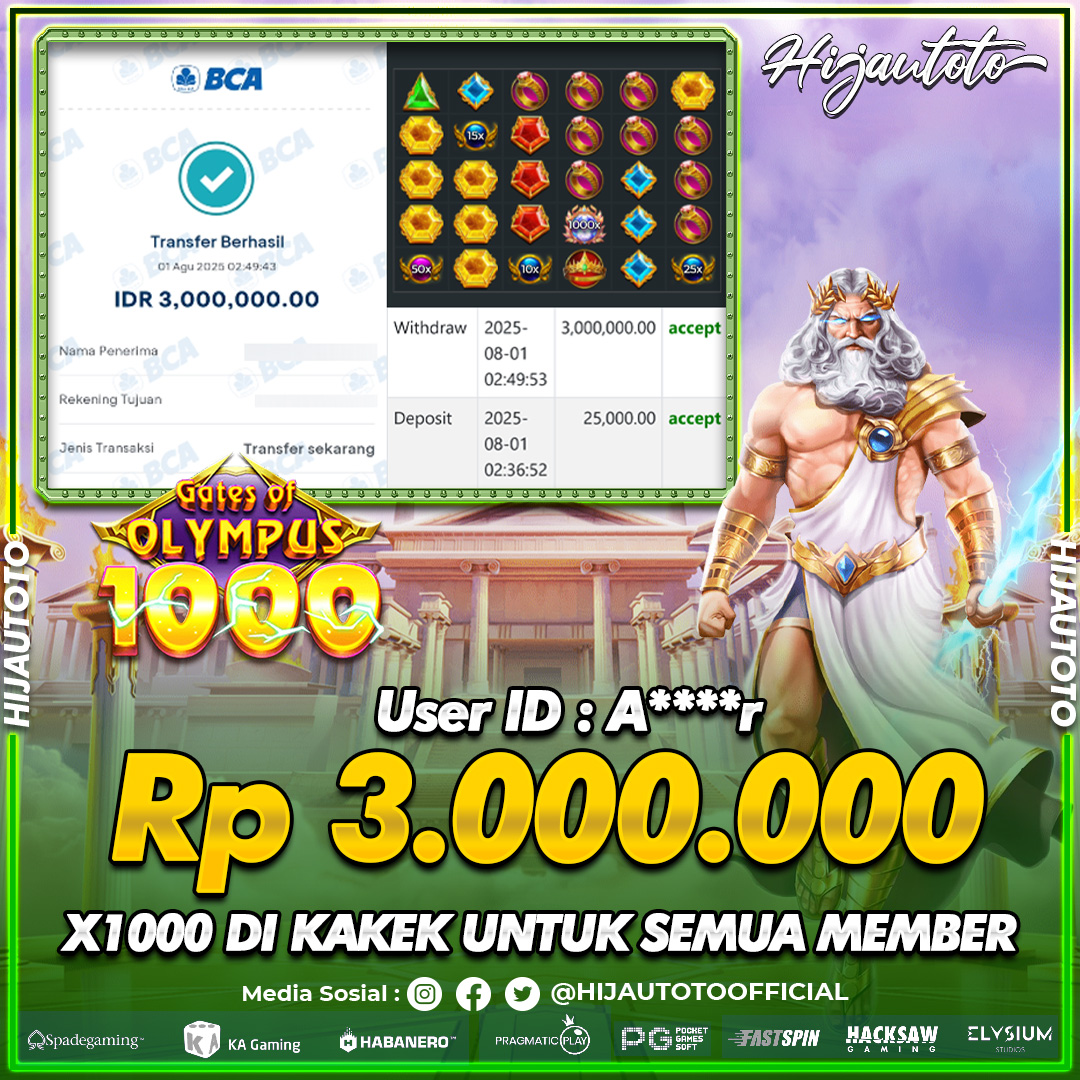 β¨ JACKPOT DI SLOT GATES OF OLYMPUS 1000 β¨