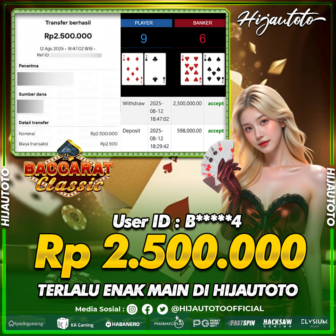 Selamat datang di HIJAUTOTO, tempatnya seru-seruan dan cuan besar! Mulai main cukup dengan modal Rp5.000 aja, taruhan super murah dari Rp100 perak! Mau main slot yang penuh warna? Atau togel dari 20 pasaran paling hits? Atau mungkin tembak ikan yang bikin deg-degan? Tenang, ada juga taruhan bola, sabung ayam, dan live casino yang bikin suasana makin hidup! Daftar sekarang dan dapetin bonus new member 100% langsung, biar modalmu makin tebal. Deposit gampang banget, bisa pakai QRIS, dan kalau butuh bantuan, customer service kita siap 24 jam nonstop. Jadi, tunggu apa lagi? Yuk, gabung dan bawa pulang kemenangannya cuma di HIJAUTOTO!