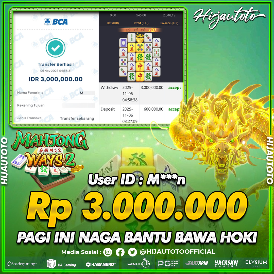 Selamat datang di HIJAUTOTO, tempatnya seru-seruan dan cuan besar! Mulai main cukup dengan modal Rp5.000 aja, taruhan super murah dari Rp100 perak! Mau main slot yang penuh warna? Atau togel dari 20 pasaran paling hits? Atau mungkin tembak ikan yang bikin deg-degan? Tenang, ada juga taruhan bola, sabung ayam, dan live casino yang bikin suasana makin hidup! Daftar sekarang dan dapetin bonus new member 100% langsung, biar modalmu makin tebal. Deposit gampang banget, bisa pakai QRIS, dan kalau butuh bantuan, customer service kita siap 24 jam nonstop. Jadi, tunggu apa lagi? Yuk, gabung dan bawa pulang kemenangannya cuma di HIJAUTOTO!