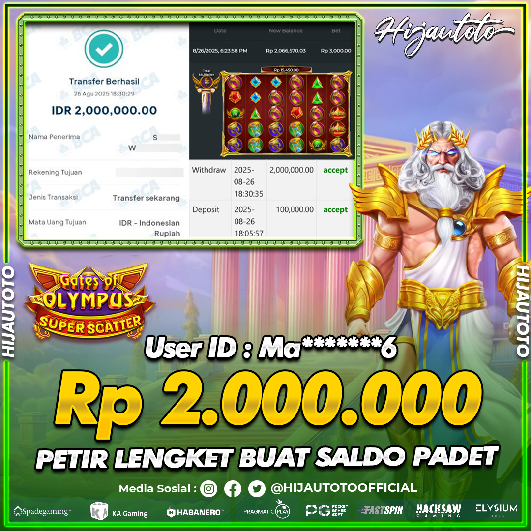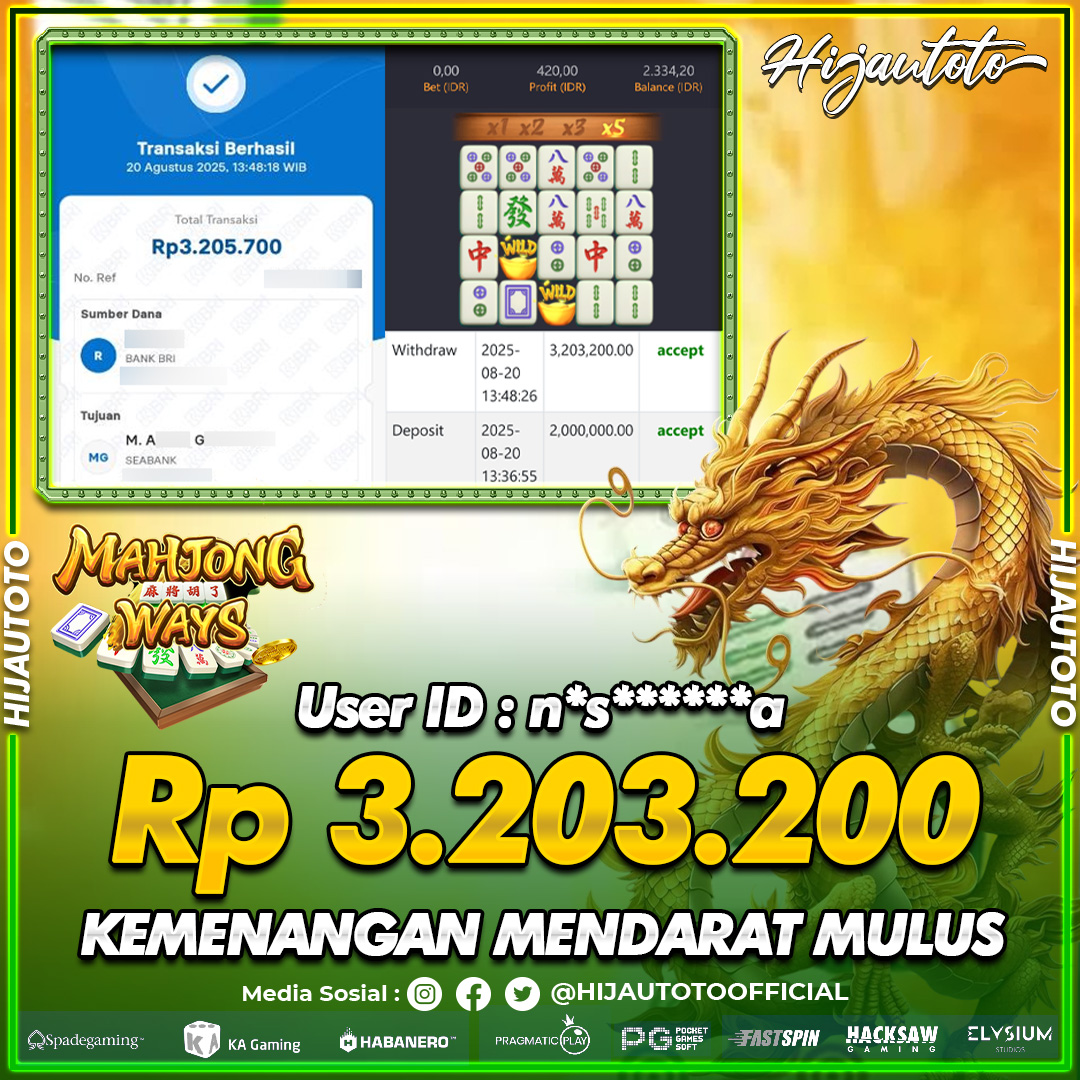 Selamat datang di HIJAUTOTO, tempatnya seru-seruan dan cuan besar! Mulai main cukup dengan modal Rp5.000 aja, taruhan super murah dari Rp100 perak! Mau main slot yang penuh warna? Atau togel dari 20 pasaran paling hits? Atau mungkin tembak ikan yang bikin deg-degan? Tenang, ada juga taruhan bola, sabung ayam, dan live casino yang bikin suasana makin hidup! Daftar sekarang dan dapetin bonus new member 100% langsung, biar modalmu makin tebal. Deposit gampang banget, bisa pakai QRIS, dan kalau butuh bantuan, customer service kita siap 24 jam nonstop. Jadi, tunggu apa lagi? Yuk, gabung dan bawa pulang kemenangannya cuma di HIJAUTOTO!