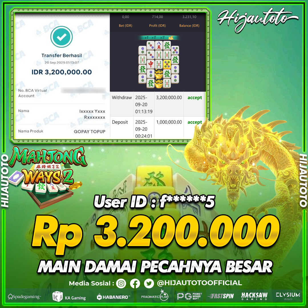 Selamat datang di HIJAUTOTO, tempatnya seru-seruan dan cuan besar! Mulai main cukup dengan modal Rp5.000 aja, taruhan super murah dari Rp100 perak! Mau main slot yang penuh warna? Atau togel dari 20 pasaran paling hits? Atau mungkin tembak ikan yang bikin deg-degan? Tenang, ada juga taruhan bola, sabung ayam, dan live casino yang bikin suasana makin hidup! Daftar sekarang dan dapetin bonus new member 100% langsung, biar modalmu makin tebal. Deposit gampang banget, bisa pakai QRIS, dan kalau butuh bantuan, customer service kita siap 24 jam nonstop. Jadi, tunggu apa lagi? Yuk, gabung dan bawa pulang kemenangannya cuma di HIJAUTOTO!
