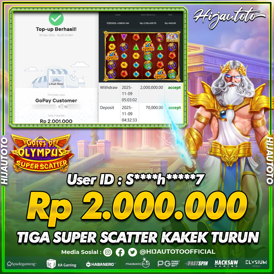 Selamat Kepada Member HIJAUTOTO SA******5 Telah Jackpot Di SLOT GATES OF OLYMPUS SUPER SCATTER