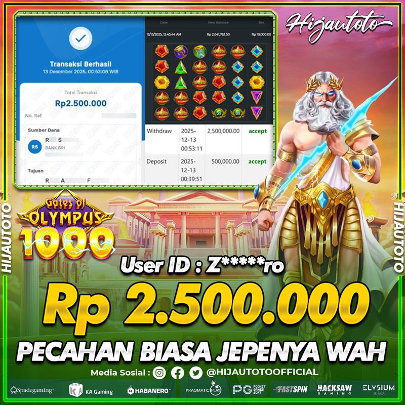 Selamat Kepada Member HIJAUTOTO Z*****RO Telah Jackpot Di SLOT GATES OF OLYMPUS 1000