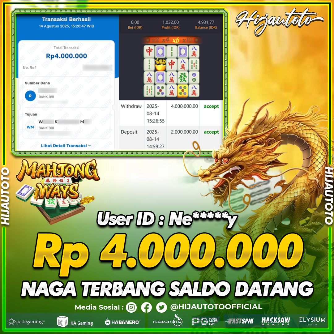 Selamat datang di HIJAUTOTO, tempatnya seru-seruan dan cuan besar! Mulai main cukup dengan modal Rp5.000 aja, taruhan super murah dari Rp100 perak! Mau main slot yang penuh warna? Atau togel dari 20 pasaran paling hits? Atau mungkin tembak ikan yang bikin deg-degan? Tenang, ada juga taruhan bola, sabung ayam, dan live casino yang bikin suasana makin hidup! Daftar sekarang dan dapetin bonus new member 100% langsung, biar modalmu makin tebal. Deposit gampang banget, bisa pakai QRIS, dan kalau butuh bantuan, customer service kita siap 24 jam nonstop. Jadi, tunggu apa lagi? Yuk, gabung dan bawa pulang kemenangannya cuma di HIJAUTOTO!