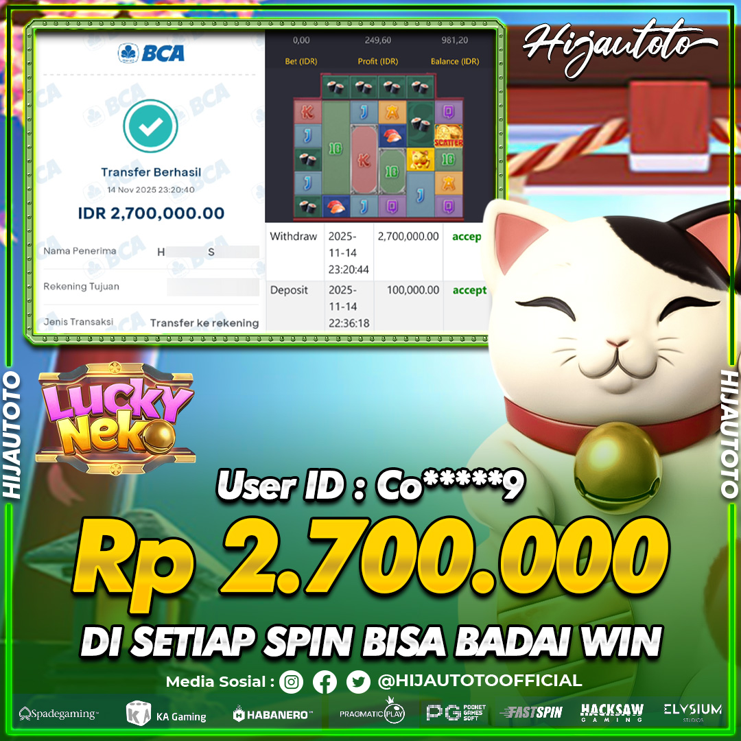 β¨ JACKPOT DI SLOT LUCKY NEKO β¨