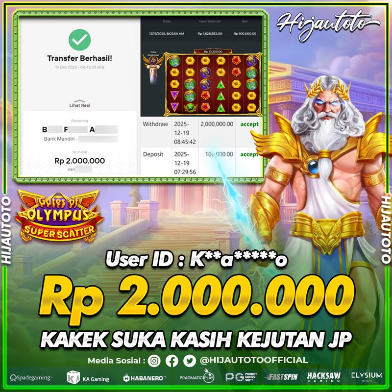 Karena berhasil memenangkan Rp.Rp.5.000.000 dari permainan seru SLOT GATES OF OLYMPUS 1000 di HIJAUTOTO! πŸ’°πŸ’Έ