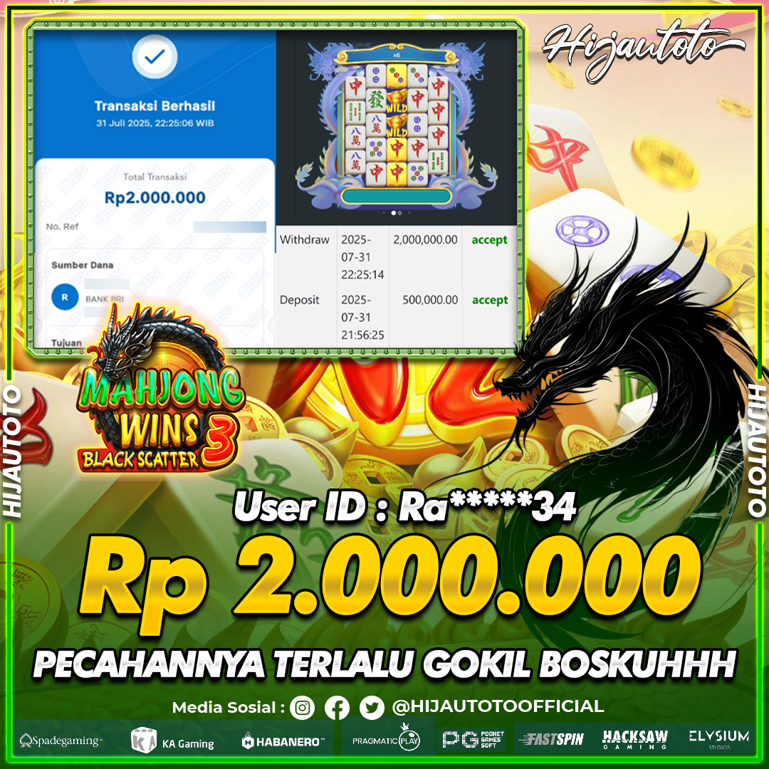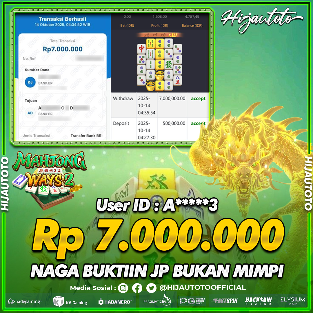 Selamat datang di HIJAUTOTO, tempatnya seru-seruan dan cuan besar! Mulai main cukup dengan modal Rp5.000 aja, taruhan super murah dari Rp100 perak! Mau main slot yang penuh warna? Atau togel dari 20 pasaran paling hits? Atau mungkin tembak ikan yang bikin deg-degan? Tenang, ada juga taruhan bola, sabung ayam, dan live casino yang bikin suasana makin hidup! Daftar sekarang dan dapetin bonus new member 100% langsung, biar modalmu makin tebal. Deposit gampang banget, bisa pakai QRIS, dan kalau butuh bantuan, customer service kita siap 24 jam nonstop. Jadi, tunggu apa lagi? Yuk, gabung dan bawa pulang kemenangannya cuma di HIJAUTOTO!