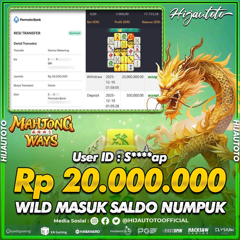 Selamat datang di HIJAUTOTO, tempatnya seru-seruan dan cuan besar! Mulai main cukup dengan modal Rp5.000 aja, taruhan super murah dari Rp100 perak! Mau main slot yang penuh warna? Atau togel dari 20 pasaran paling hits? Atau mungkin tembak ikan yang bikin deg-degan? Tenang, ada juga taruhan bola, sabung ayam, dan live casino yang bikin suasana makin hidup! Daftar sekarang dan dapetin bonus new member 100% langsung, biar modalmu makin tebal. Deposit gampang banget, bisa pakai QRIS, dan kalau butuh bantuan, customer service kita siap 24 jam nonstop. Jadi, tunggu apa lagi? Yuk, gabung dan bawa pulang kemenangannya cuma di HIJAUTOTO!