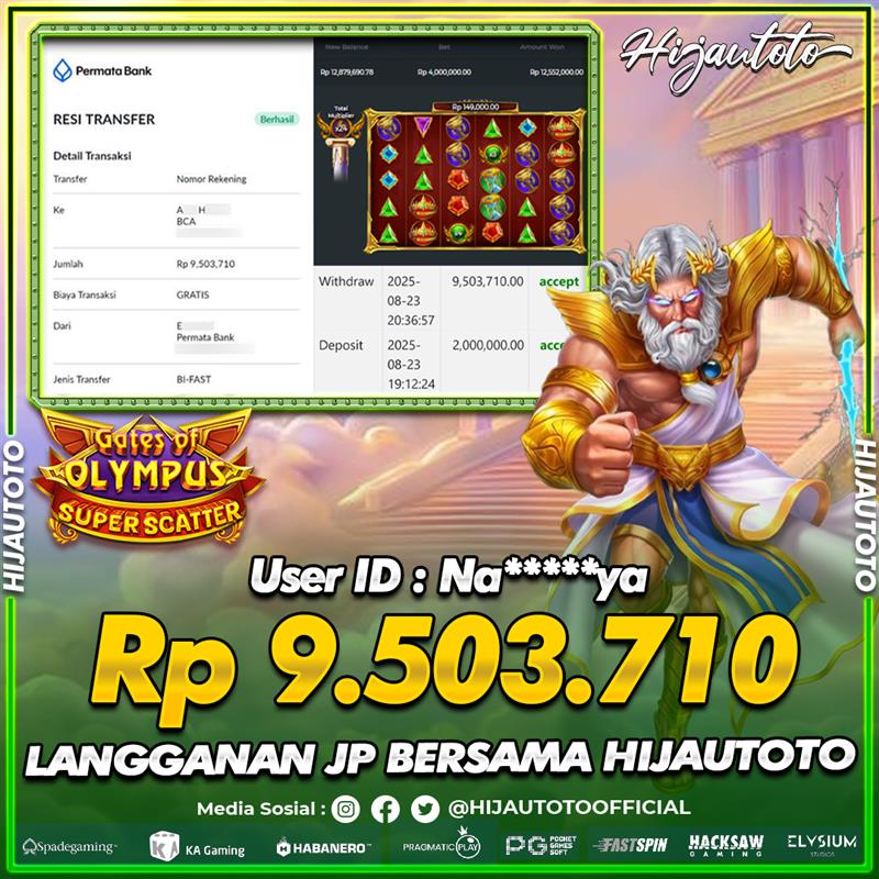 Selamat Kepada Member HIJAUTOTO NA****YA Telah Jackpot Di SLOT GATES OF OLYMPUS SUPER SCATTER