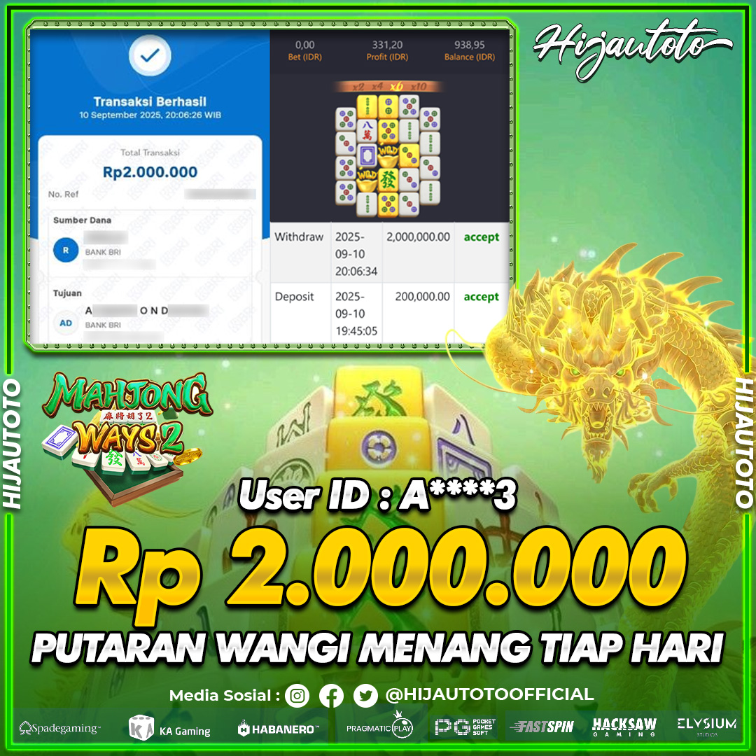 Selamat datang di HIJAUTOTO, tempatnya seru-seruan dan cuan besar! Mulai main cukup dengan modal Rp5.000 aja, taruhan super murah dari Rp100 perak! Mau main slot yang penuh warna? Atau togel dari 20 pasaran paling hits? Atau mungkin tembak ikan yang bikin deg-degan? Tenang, ada juga taruhan bola, sabung ayam, dan live casino yang bikin suasana makin hidup! Daftar sekarang dan dapetin bonus new member 100% langsung, biar modalmu makin tebal. Deposit gampang banget, bisa pakai QRIS, dan kalau butuh bantuan, customer service kita siap 24 jam nonstop. Jadi, tunggu apa lagi? Yuk, gabung dan bawa pulang kemenangannya cuma di HIJAUTOTO!