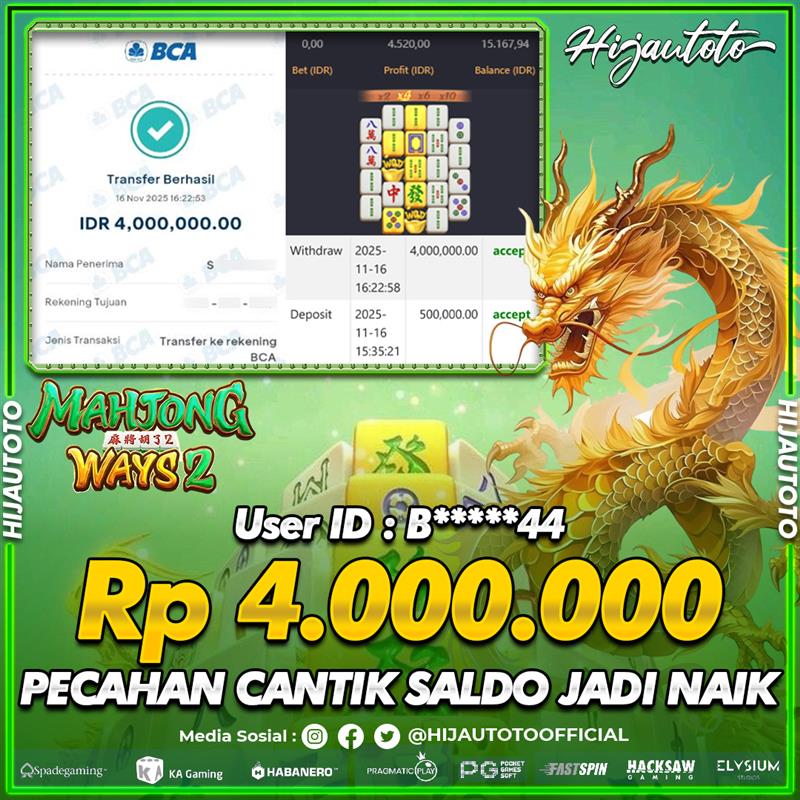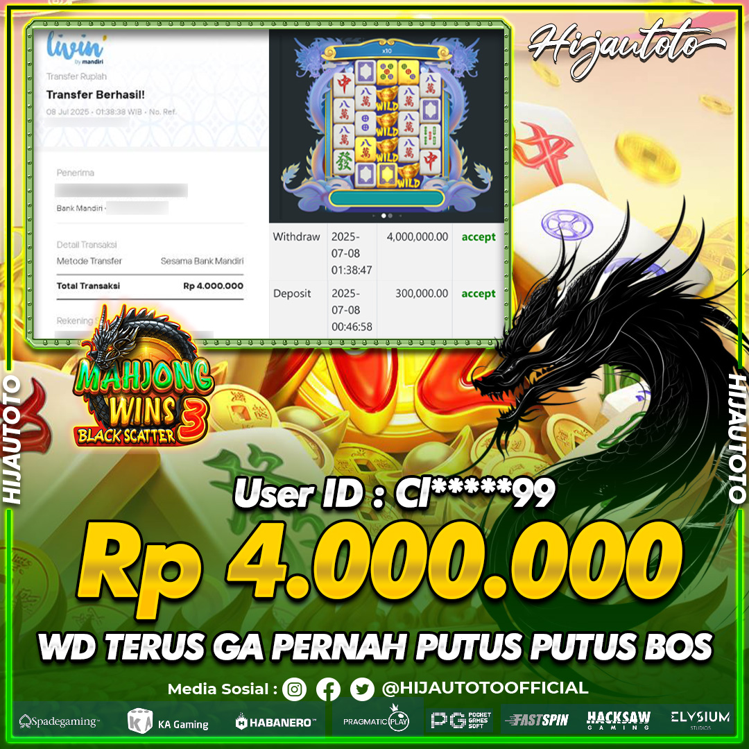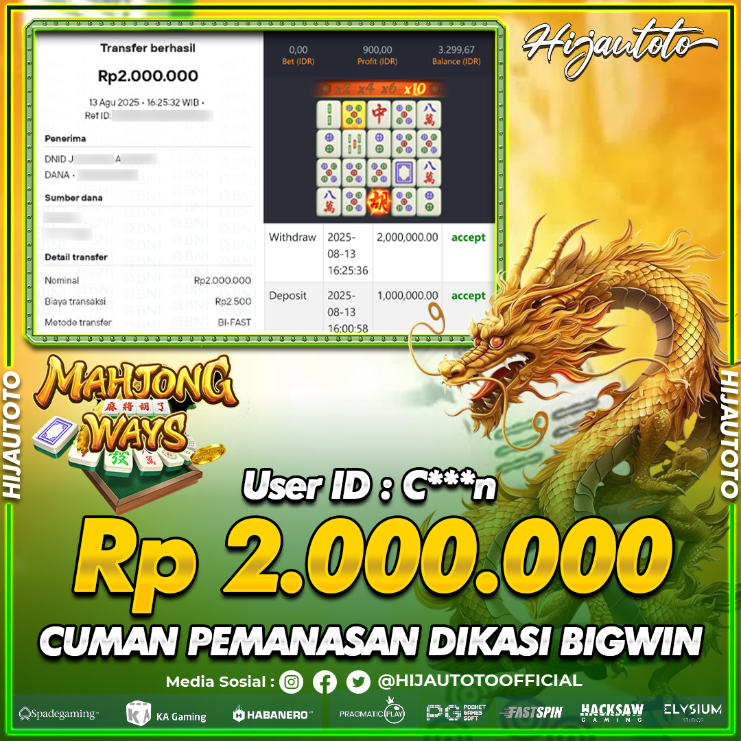 Selamat datang di HIJAUTOTO, tempatnya seru-seruan dan cuan besar! Mulai main cukup dengan modal Rp5.000 aja, taruhan super murah dari Rp100 perak! Mau main slot yang penuh warna? Atau togel dari 20 pasaran paling hits? Atau mungkin tembak ikan yang bikin deg-degan? Tenang, ada juga taruhan bola, sabung ayam, dan live casino yang bikin suasana makin hidup! Daftar sekarang dan dapetin bonus new member 100% langsung, biar modalmu makin tebal. Deposit gampang banget, bisa pakai QRIS, dan kalau butuh bantuan, customer service kita siap 24 jam nonstop. Jadi, tunggu apa lagi? Yuk, gabung dan bawa pulang kemenangannya cuma di HIJAUTOTO!