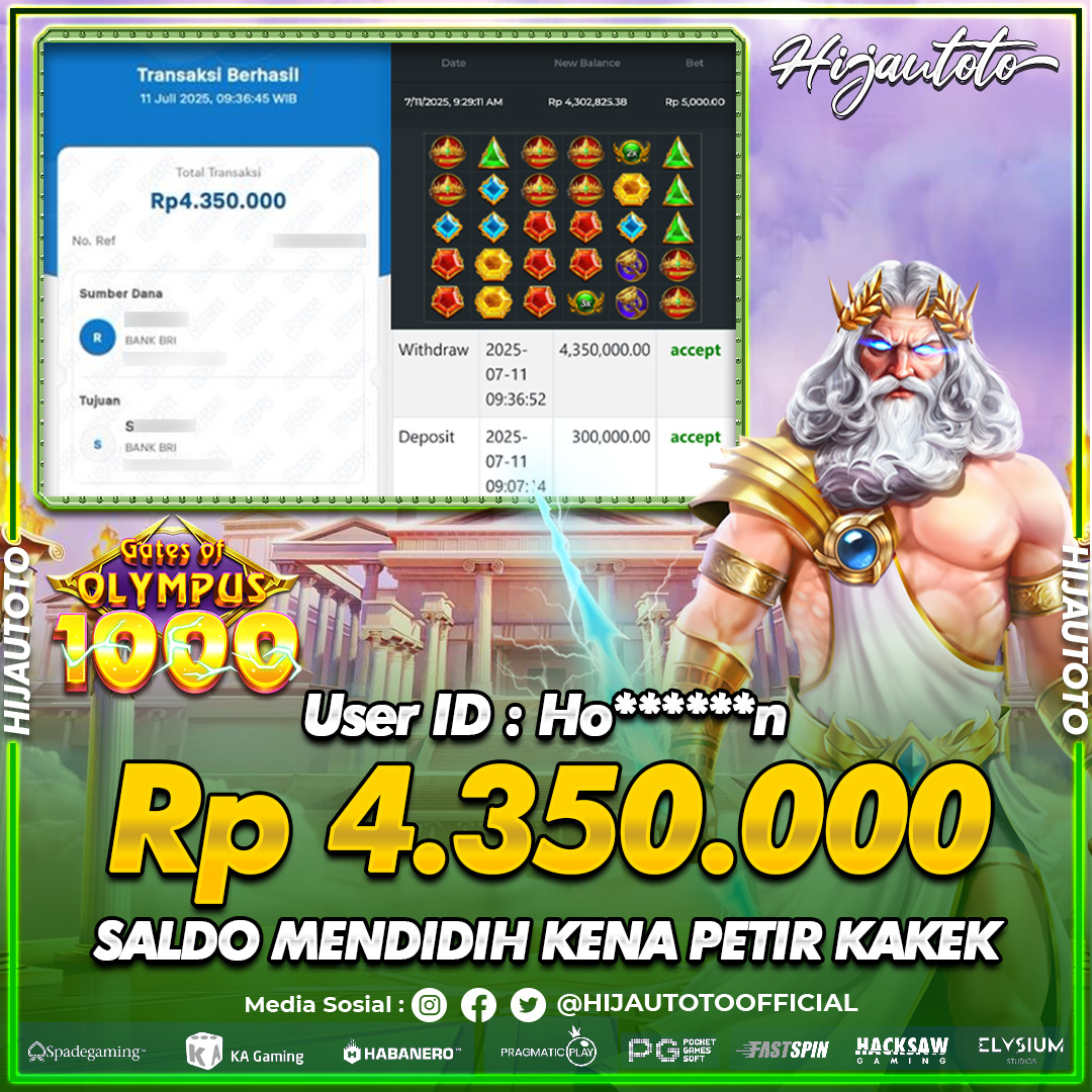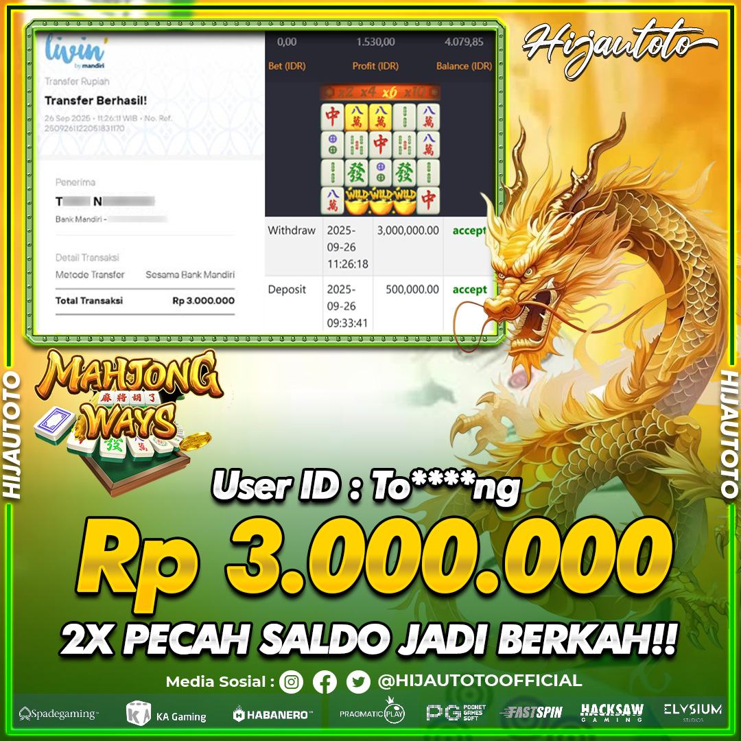 Selamat datang di HIJAUTOTO, tempatnya seru-seruan dan cuan besar! Mulai main cukup dengan modal Rp5.000 aja, taruhan super murah dari Rp100 perak! Mau main slot yang penuh warna? Atau togel dari 20 pasaran paling hits? Atau mungkin tembak ikan yang bikin deg-degan? Tenang, ada juga taruhan bola, sabung ayam, dan live casino yang bikin suasana makin hidup! Daftar sekarang dan dapetin bonus new member 100% langsung, biar modalmu makin tebal. Deposit gampang banget, bisa pakai QRIS, dan kalau butuh bantuan, customer service kita siap 24 jam nonstop. Jadi, tunggu apa lagi? Yuk, gabung dan bawa pulang kemenangannya cuma di HIJAUTOTO!
