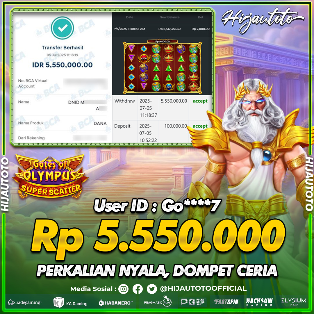 Selamat Kepada Member HIJAUTOTO GO****7 Telah Jackpot Di SLOT GATES OF OLYMPUS SUPER SCATTER