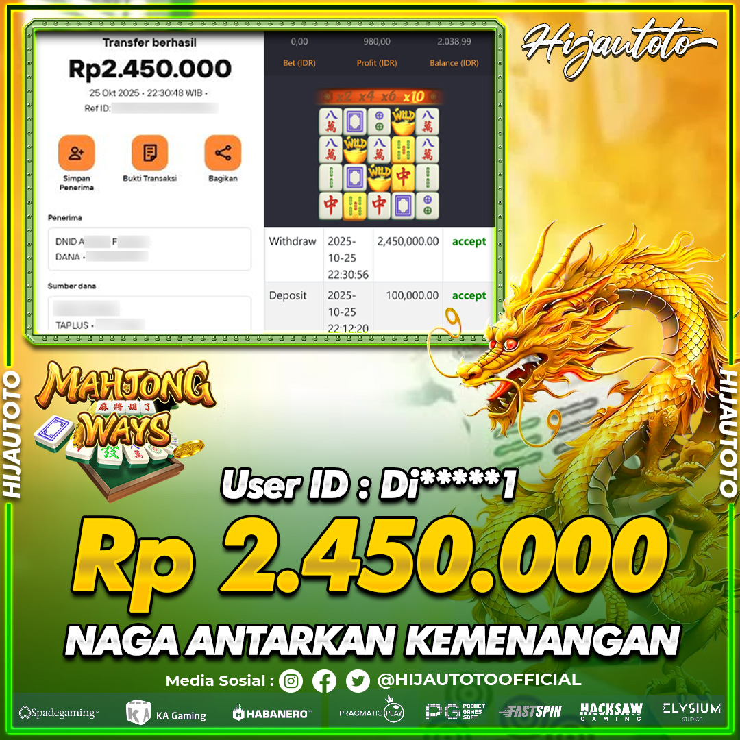Selamat datang di HIJAUTOTO, tempatnya seru-seruan dan cuan besar! Mulai main cukup dengan modal Rp5.000 aja, taruhan super murah dari Rp100 perak! Mau main slot yang penuh warna? Atau togel dari 20 pasaran paling hits? Atau mungkin tembak ikan yang bikin deg-degan? Tenang, ada juga taruhan bola, sabung ayam, dan live casino yang bikin suasana makin hidup! Daftar sekarang dan dapetin bonus new member 100% langsung, biar modalmu makin tebal. Deposit gampang banget, bisa pakai QRIS, dan kalau butuh bantuan, customer service kita siap 24 jam nonstop. Jadi, tunggu apa lagi? Yuk, gabung dan bawa pulang kemenangannya cuma di HIJAUTOTO!