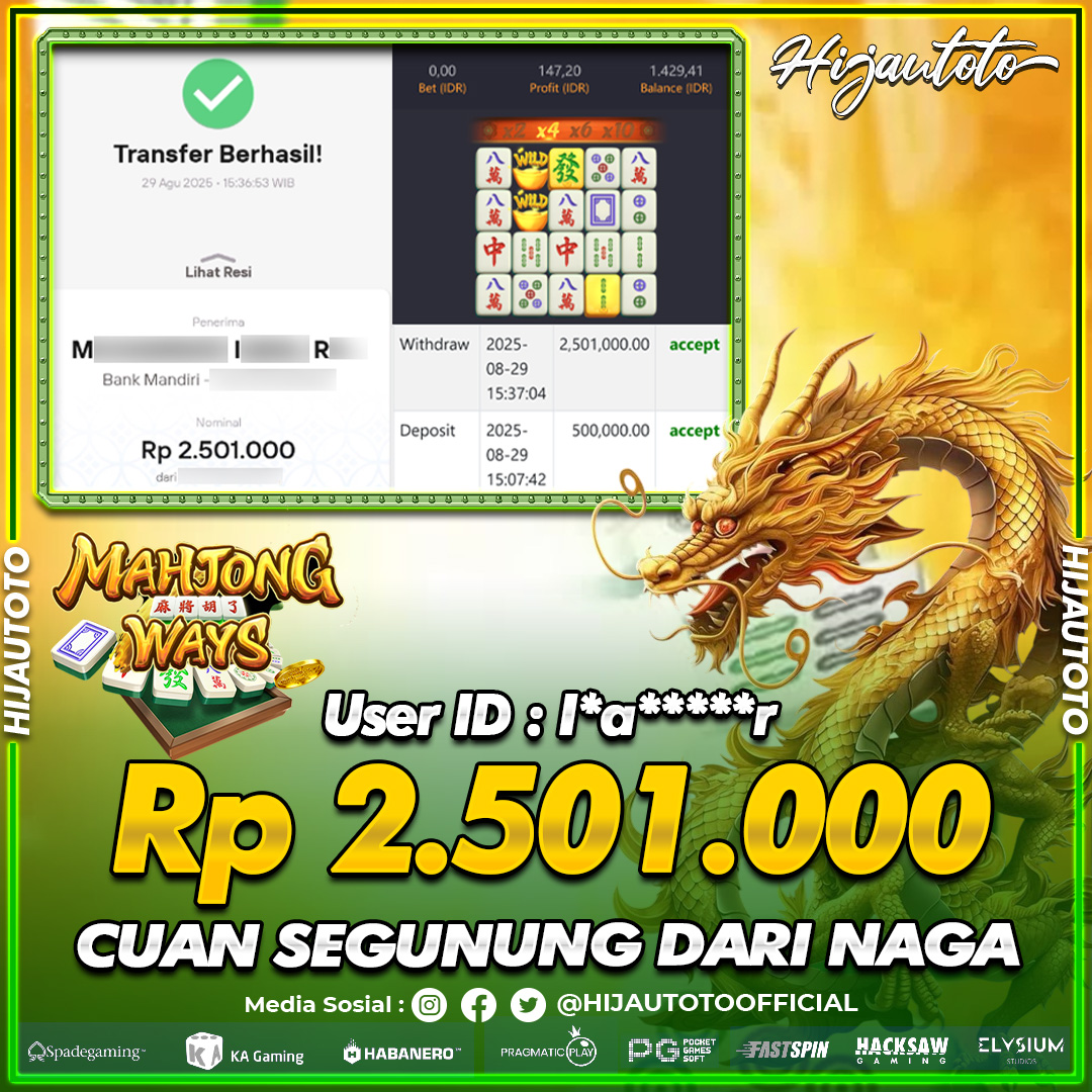 Bergabung dengan HIJAUTOTO sangat mudah dan cepat. Cukup lakukan pendaftaran dengan data lengkap, lakukan deposit minimal Rp5.000 melalui berbagai metode termasuk QRIS, dan mulai bertaruh dengan minimal taruhan Rp100. Dapatkan juga bonus new member 100% untuk modal bermain lebih besar.