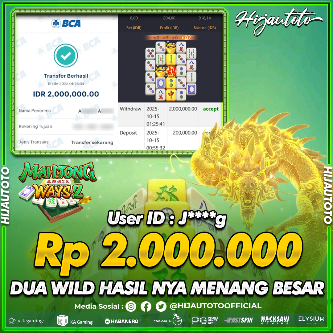 Selamat datang di HIJAUTOTO, tempatnya seru-seruan dan cuan besar! Mulai main cukup dengan modal Rp5.000 aja, taruhan super murah dari Rp100 perak! Mau main slot yang penuh warna? Atau togel dari 20 pasaran paling hits? Atau mungkin tembak ikan yang bikin deg-degan? Tenang, ada juga taruhan bola, sabung ayam, dan live casino yang bikin suasana makin hidup! Daftar sekarang dan dapetin bonus new member 100% langsung, biar modalmu makin tebal. Deposit gampang banget, bisa pakai QRIS, dan kalau butuh bantuan, customer service kita siap 24 jam nonstop. Jadi, tunggu apa lagi? Yuk, gabung dan bawa pulang kemenangannya cuma di HIJAUTOTO!