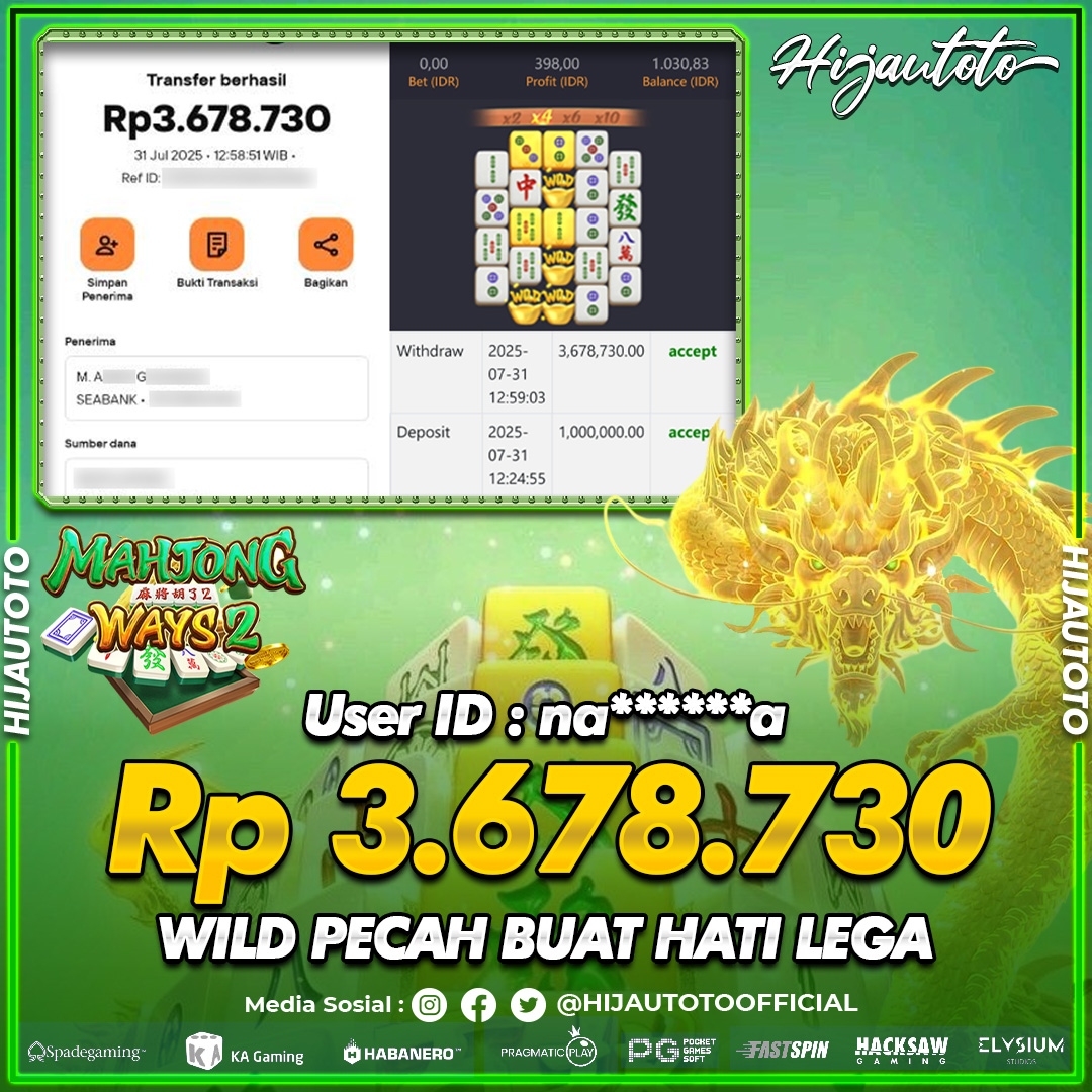 Selamat datang di HIJAUTOTO, tempatnya seru-seruan dan cuan besar! Mulai main cukup dengan modal Rp5.000 aja, taruhan super murah dari Rp100 perak! Mau main slot yang penuh warna? Atau togel dari 20 pasaran paling hits? Atau mungkin tembak ikan yang bikin deg-degan? Tenang, ada juga taruhan bola, sabung ayam, dan live casino yang bikin suasana makin hidup! Daftar sekarang dan dapetin bonus new member 100% langsung, biar modalmu makin tebal. Deposit gampang banget, bisa pakai QRIS, dan kalau butuh bantuan, customer service kita siap 24 jam nonstop. Jadi, tunggu apa lagi? Yuk, gabung dan bawa pulang kemenangannya cuma di HIJAUTOTO!
