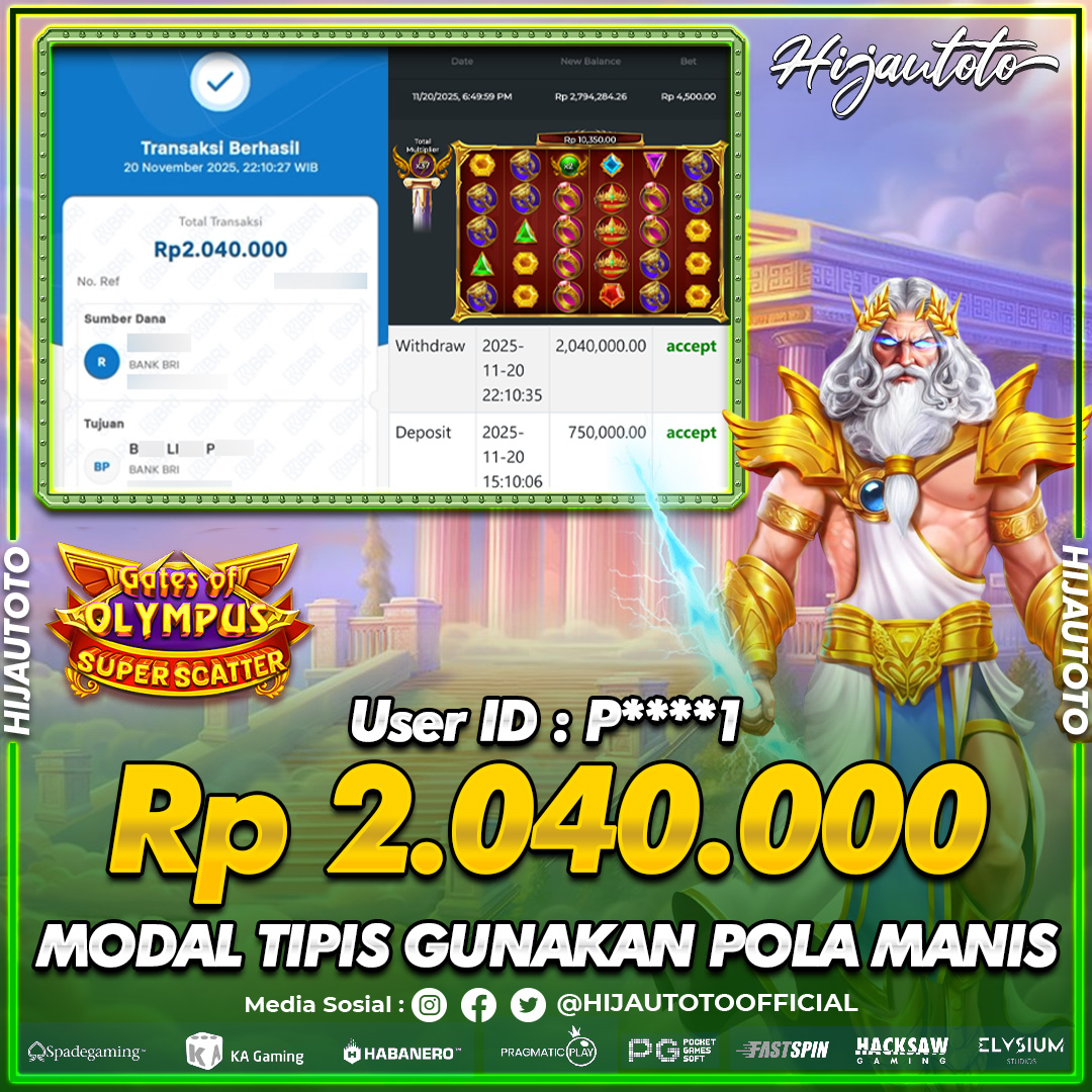 Cuma di HIJAUTOTO, tempat paling AMAN, CEPAT, & TERPERCAYA buat pecinta game SLOT GATES OF 0LYMPUS SUPER SCATTER!