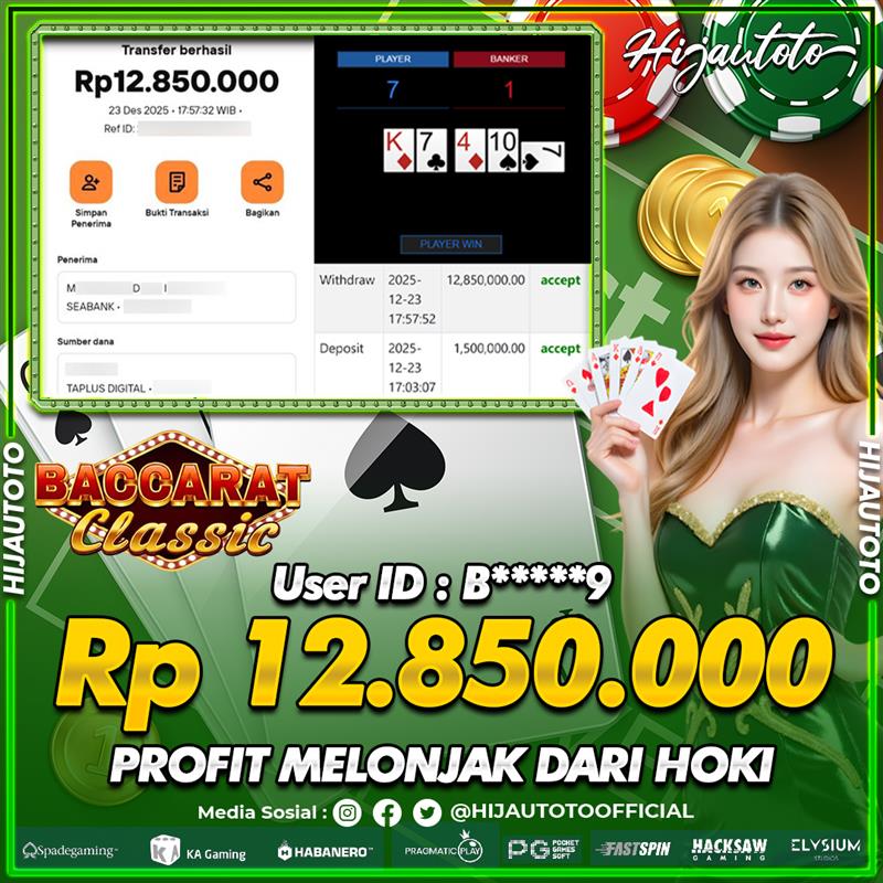 Selamat Kepada Member HIJAUTOTO B*****9 Telah Jackpot Di SLOT BACCARAT CLASSIC