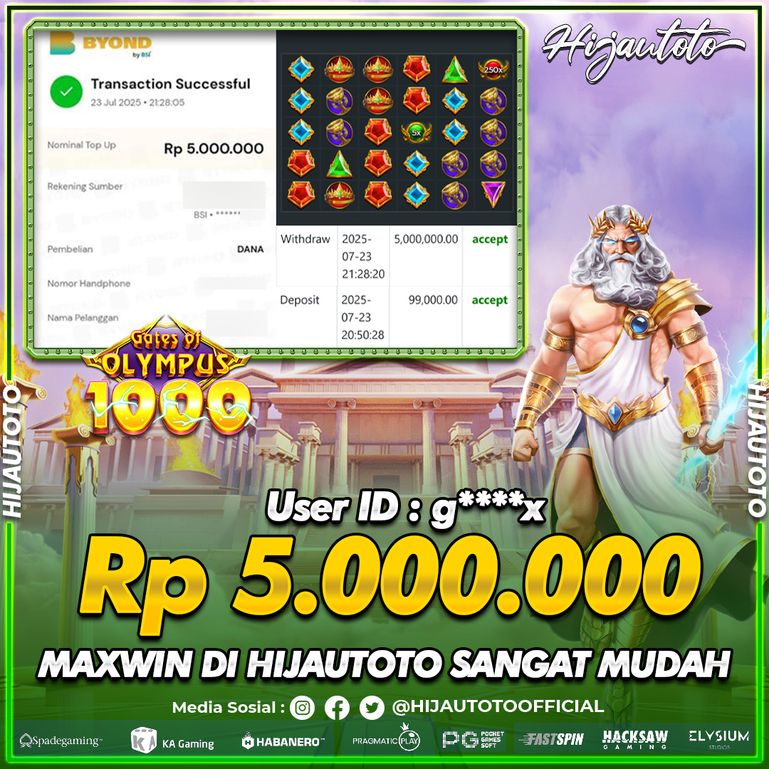 Selamat datang di HIJAUTOTO, tempatnya seru-seruan dan cuan besar! Mulai main cukup dengan modal Rp5.000 aja, taruhan super murah dari Rp100 perak! Mau main slot yang penuh warna? Atau togel dari 20 pasaran paling hits? Atau mungkin tembak ikan yang bikin deg-degan? Tenang, ada juga taruhan bola, sabung ayam, dan live casino yang bikin suasana makin hidup! Daftar sekarang dan dapetin bonus new member 100% langsung, biar modalmu makin tebal. Deposit gampang banget, bisa pakai QRIS, dan kalau butuh bantuan, customer service kita siap 24 jam nonstop. Jadi, tunggu apa lagi? Yuk, gabung dan bawa pulang kemenangannya cuma di HIJAUTOTO!