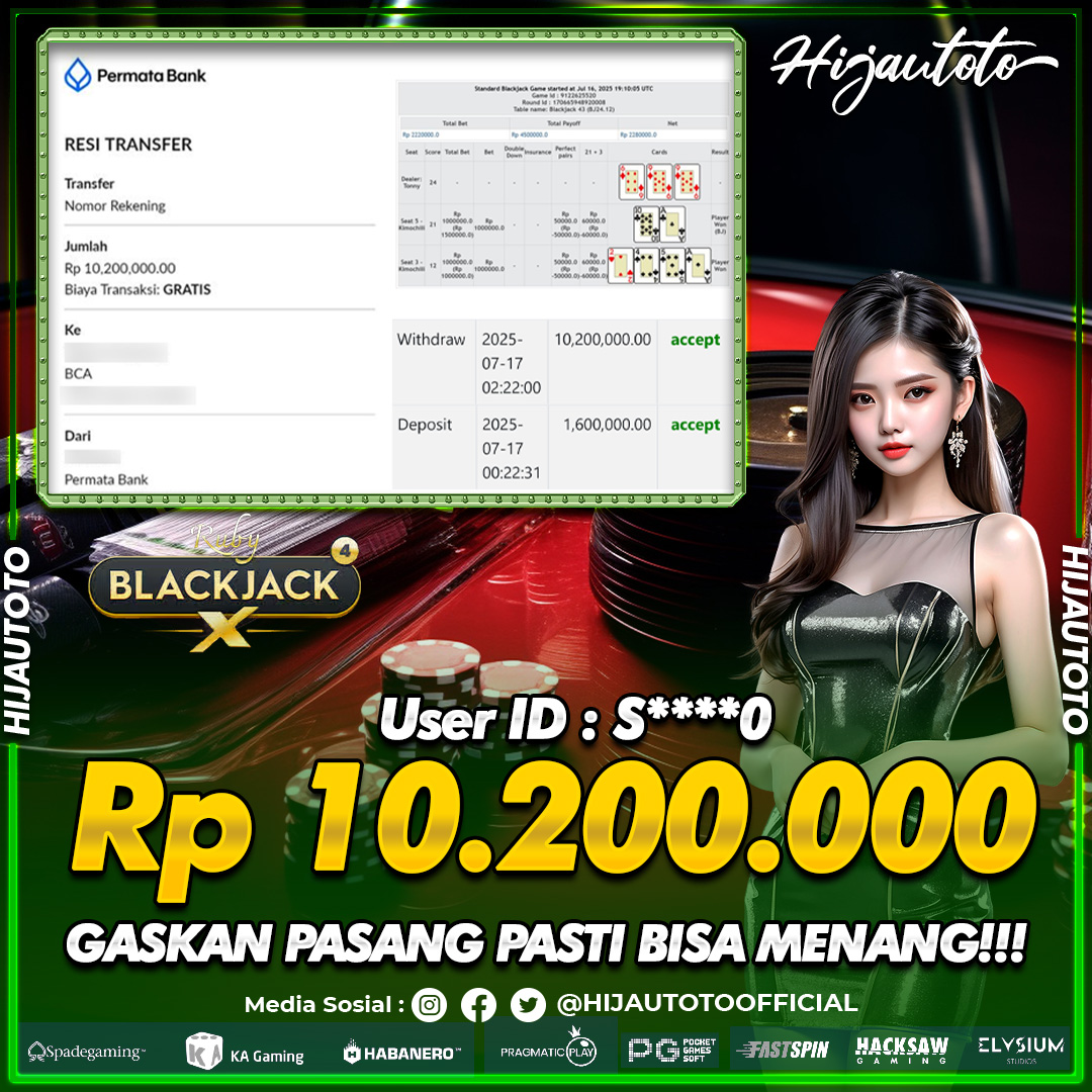 Selamat datang di HIJAUTOTO, tempatnya seru-seruan dan cuan besar! Mulai main cukup dengan modal Rp5.000 aja, taruhan super murah dari Rp100 perak! Mau main slot yang penuh warna? Atau togel dari 20 pasaran paling hits? Atau mungkin tembak ikan yang bikin deg-degan? Tenang, ada juga taruhan bola, sabung ayam, dan live casino yang bikin suasana makin hidup! Daftar sekarang dan dapetin bonus new member 100% langsung, biar modalmu makin tebal. Deposit gampang banget, bisa pakai QRIS, dan kalau butuh bantuan, customer service kita siap 24 jam nonstop. Jadi, tunggu apa lagi? Yuk, gabung dan bawa pulang kemenangannya cuma di HIJAUTOTO!