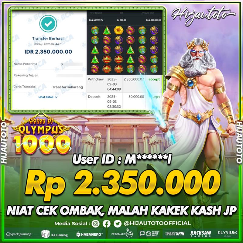 Selamat datang di HIJAUTOTO, tempatnya seru-seruan dan cuan besar! Mulai main cukup dengan modal Rp5.000 aja, taruhan super murah dari Rp100 perak! Mau main slot yang penuh warna? Atau togel dari 20 pasaran paling hits? Atau mungkin tembak ikan yang bikin deg-degan? Tenang, ada juga taruhan bola, sabung ayam, dan live casino yang bikin suasana makin hidup! Daftar sekarang dan dapetin bonus new member 100% langsung, biar modalmu makin tebal. Deposit gampang banget, bisa pakai QRIS, dan kalau butuh bantuan, customer service kita siap 24 jam nonstop. Jadi, tunggu apa lagi? Yuk, gabung dan bawa pulang kemenangannya cuma di HIJAUTOTO!