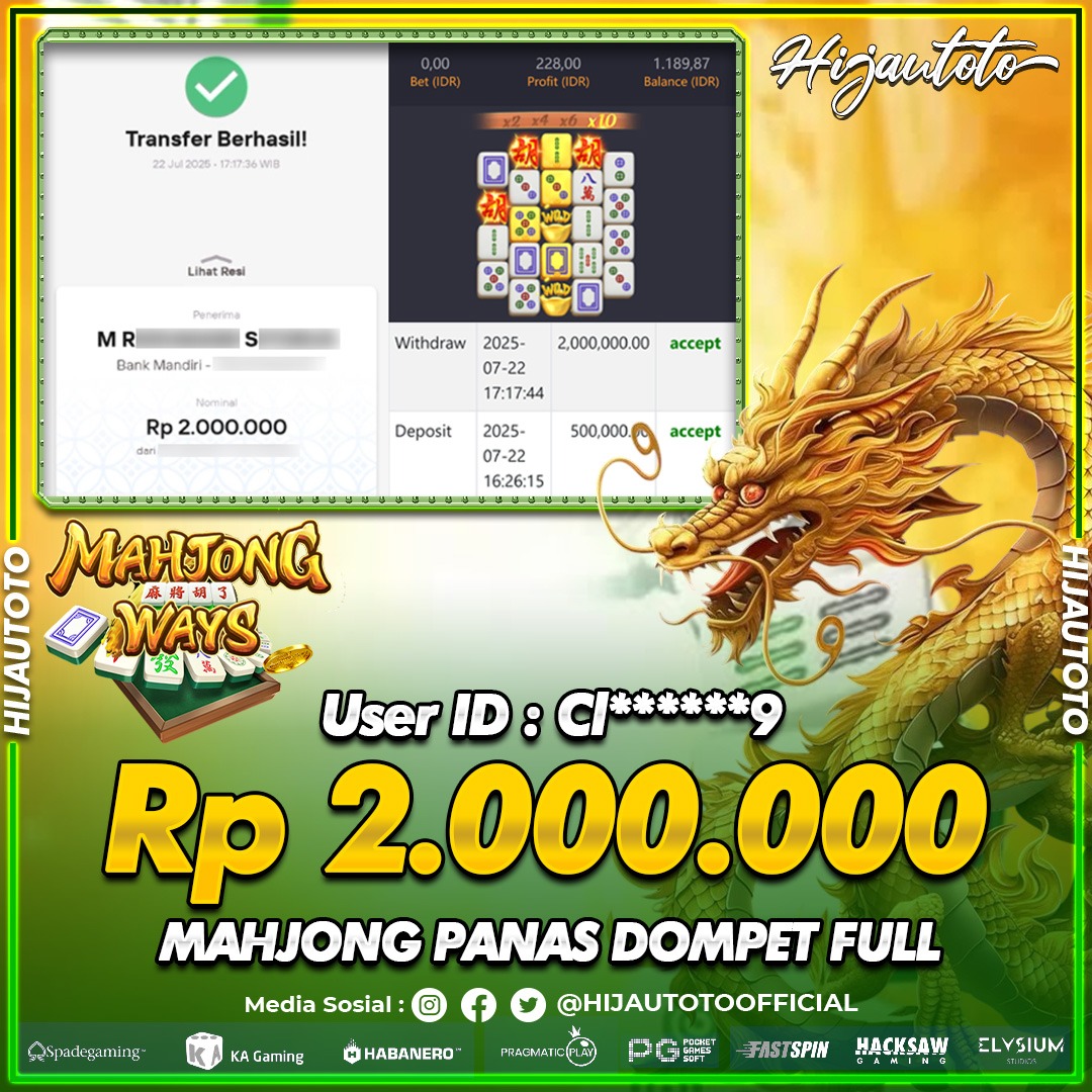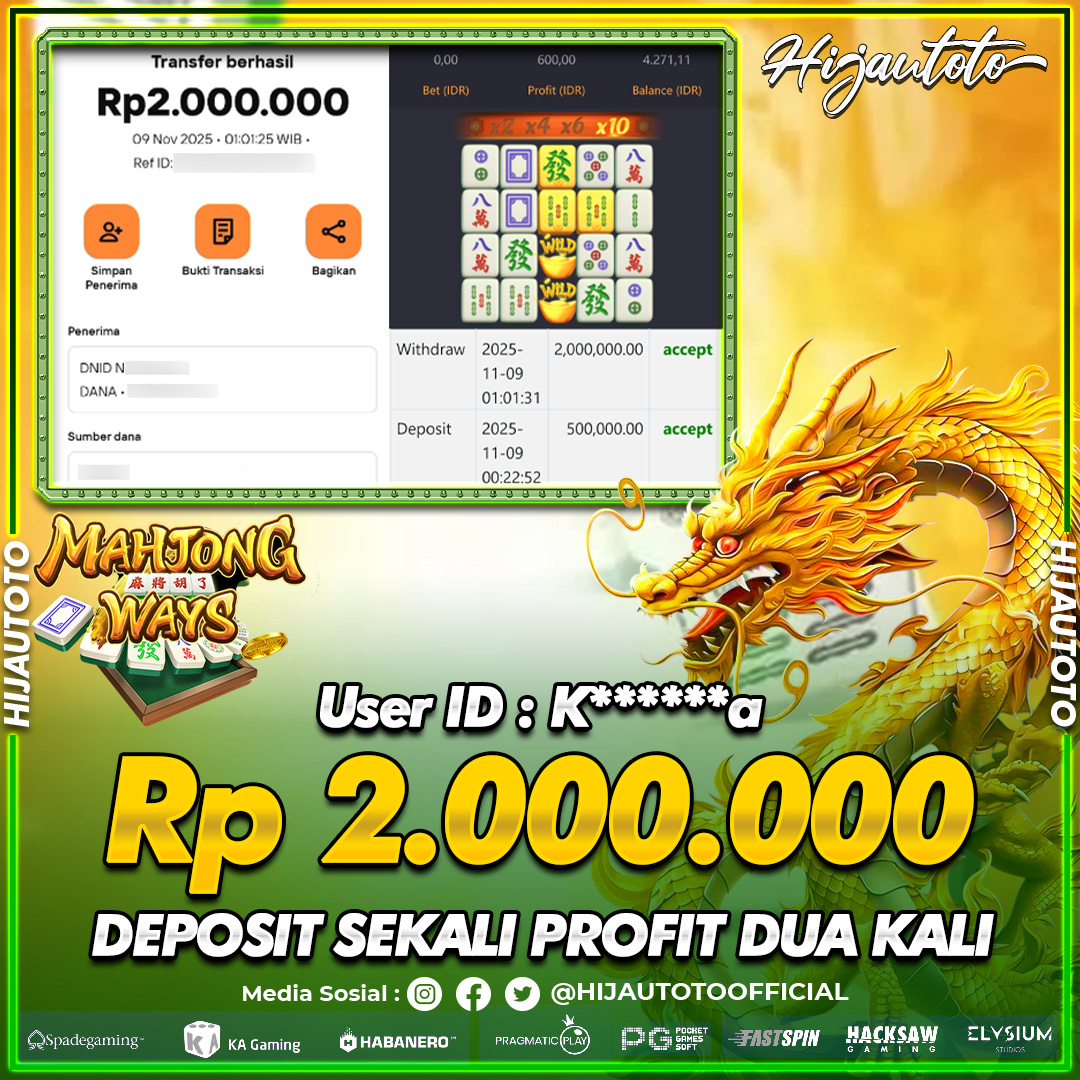 Selamat datang di HIJAUTOTO, tempatnya seru-seruan dan cuan besar! Mulai main cukup dengan modal Rp5.000 aja, taruhan super murah dari Rp100 perak! Mau main slot yang penuh warna? Atau togel dari 20 pasaran paling hits? Atau mungkin tembak ikan yang bikin deg-degan? Tenang, ada juga taruhan bola, sabung ayam, dan live casino yang bikin suasana makin hidup! Daftar sekarang dan dapetin bonus new member 100% langsung, biar modalmu makin tebal. Deposit gampang banget, bisa pakai QRIS, dan kalau butuh bantuan, customer service kita siap 24 jam nonstop. Jadi, tunggu apa lagi? Yuk, gabung dan bawa pulang kemenangannya cuma di HIJAUTOTO!