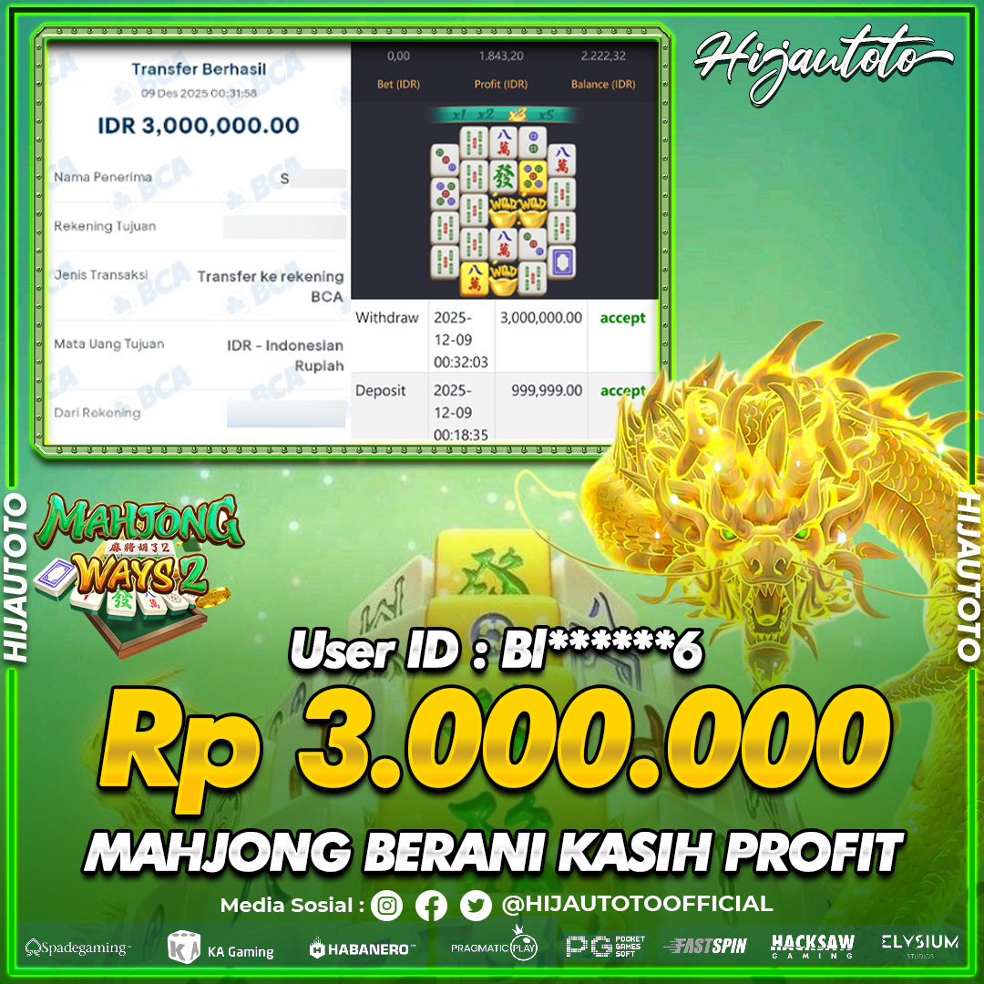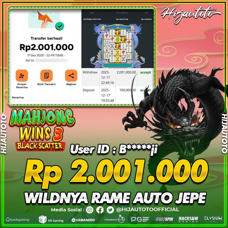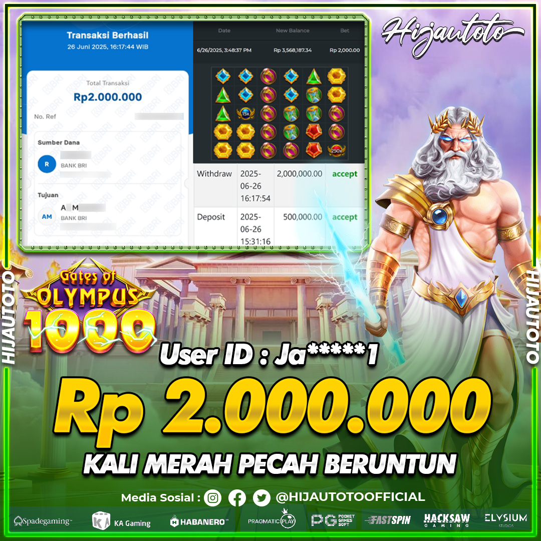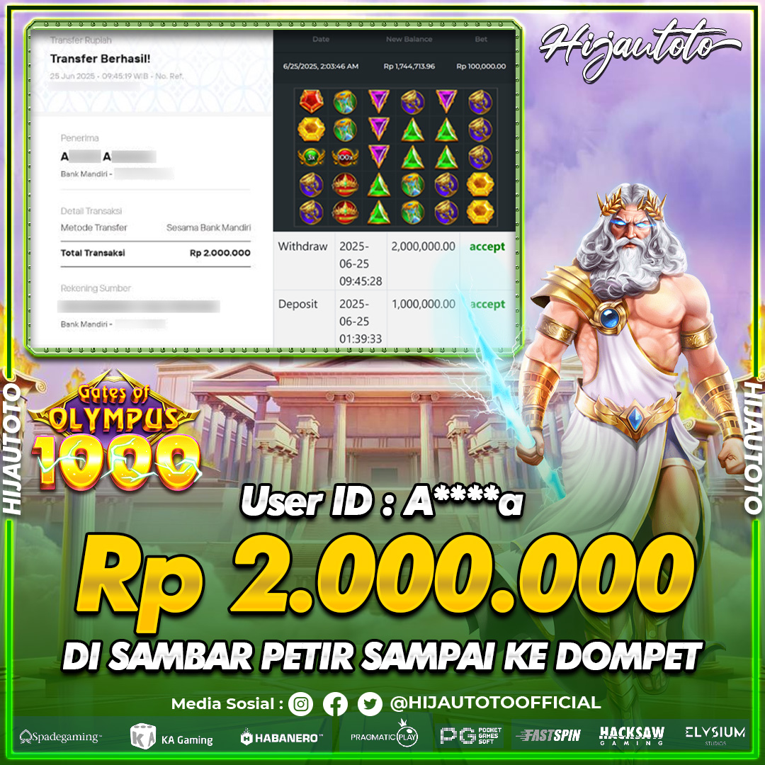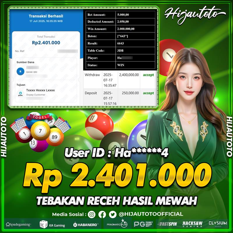 Selamat datang di HIJAUTOTO, tempatnya seru-seruan dan cuan besar! Mulai main cukup dengan modal Rp5.000 aja, taruhan super murah dari Rp100 perak! Mau main slot yang penuh warna? Atau togel dari 20 pasaran paling hits? Atau mungkin tembak ikan yang bikin deg-degan? Tenang, ada juga taruhan bola, sabung ayam, dan live casino yang bikin suasana makin hidup! Daftar sekarang dan dapetin bonus new member 100% langsung, biar modalmu makin tebal. Deposit gampang banget, bisa pakai QRIS, dan kalau butuh bantuan, customer service kita siap 24 jam nonstop. Jadi, tunggu apa lagi? Yuk, gabung dan bawa pulang kemenangannya cuma di HIJAUTOTO!