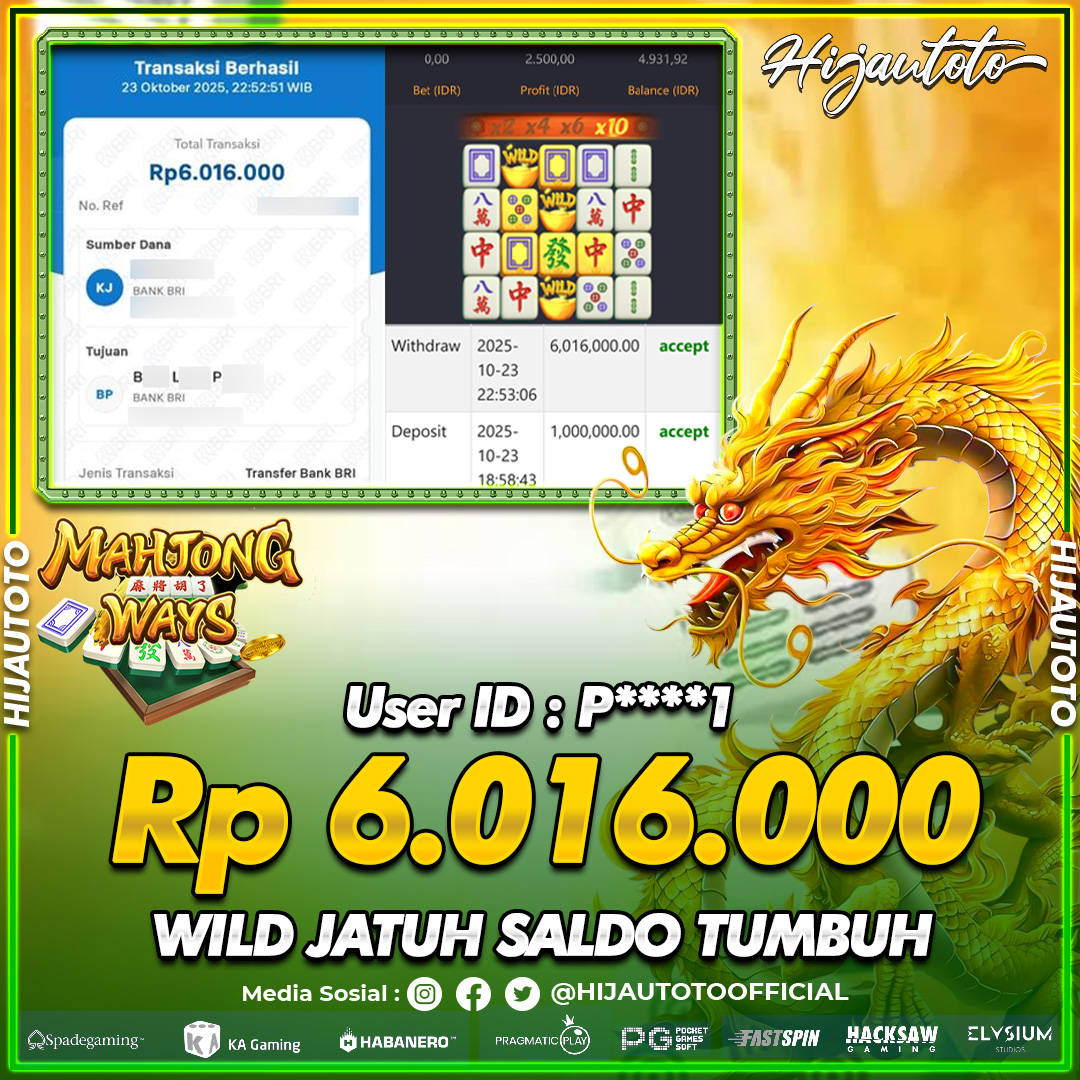 Selamat datang di HIJAUTOTO, tempatnya seru-seruan dan cuan besar! Mulai main cukup dengan modal Rp5.000 aja, taruhan super murah dari Rp100 perak! Mau main slot yang penuh warna? Atau togel dari 20 pasaran paling hits? Atau mungkin tembak ikan yang bikin deg-degan? Tenang, ada juga taruhan bola, sabung ayam, dan live casino yang bikin suasana makin hidup! Daftar sekarang dan dapetin bonus new member 100% langsung, biar modalmu makin tebal. Deposit gampang banget, bisa pakai QRIS, dan kalau butuh bantuan, customer service kita siap 24 jam nonstop. Jadi, tunggu apa lagi? Yuk, gabung dan bawa pulang kemenangannya cuma di HIJAUTOTO!