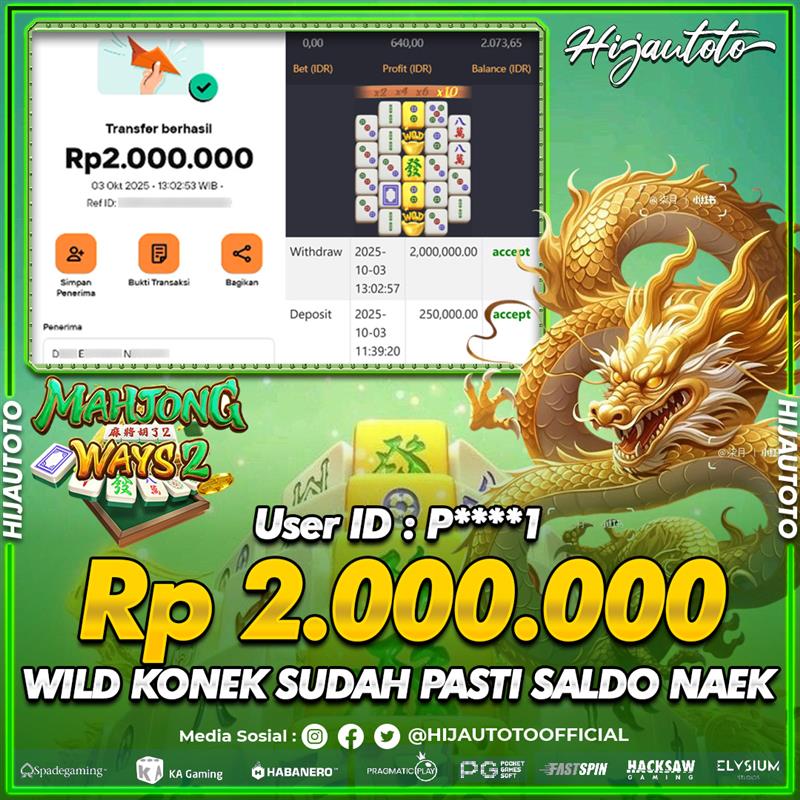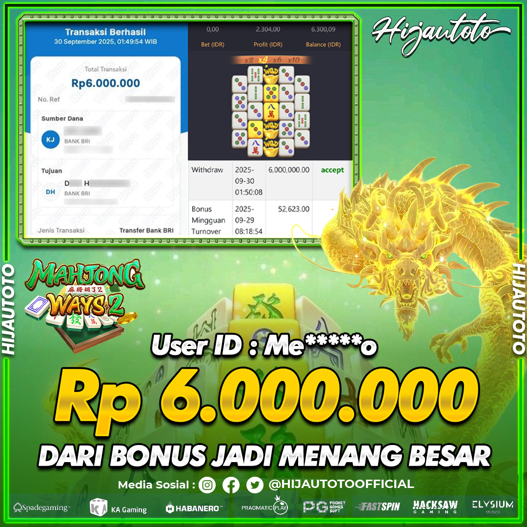 Selamat datang di HIJAUTOTO, tempatnya seru-seruan dan cuan besar! Mulai main cukup dengan modal Rp5.000 aja, taruhan super murah dari Rp100 perak! Mau main slot yang penuh warna? Atau togel dari 20 pasaran paling hits? Atau mungkin tembak ikan yang bikin deg-degan? Tenang, ada juga taruhan bola, sabung ayam, dan live casino yang bikin suasana makin hidup! Daftar sekarang dan dapetin bonus new member 100% langsung, biar modalmu makin tebal. Deposit gampang banget, bisa pakai QRIS, dan kalau butuh bantuan, customer service kita siap 24 jam nonstop. Jadi, tunggu apa lagi? Yuk, gabung dan bawa pulang kemenangannya cuma di HIJAUTOTO!
