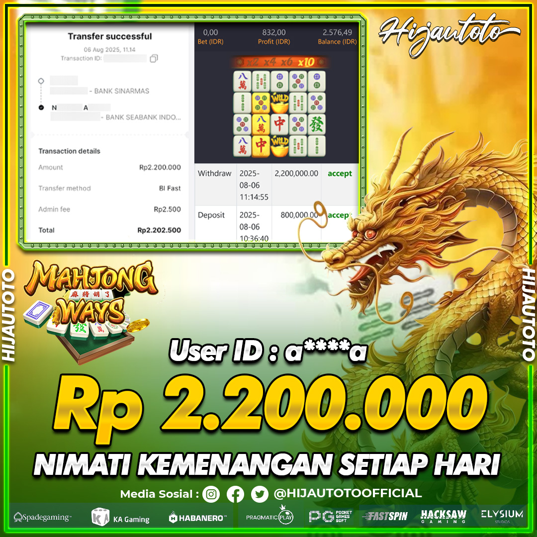 Selamat datang di HIJAUTOTO, tempatnya seru-seruan dan cuan besar! Mulai main cukup dengan modal Rp5.000 aja, taruhan super murah dari Rp100 perak! Mau main slot yang penuh warna? Atau togel dari 20 pasaran paling hits? Atau mungkin tembak ikan yang bikin deg-degan? Tenang, ada juga taruhan bola, sabung ayam, dan live casino yang bikin suasana makin hidup! Daftar sekarang dan dapetin bonus new member 100% langsung, biar modalmu makin tebal. Deposit gampang banget, bisa pakai QRIS, dan kalau butuh bantuan, customer service kita siap 24 jam nonstop. Jadi, tunggu apa lagi? Yuk, gabung dan bawa pulang kemenangannya cuma di HIJAUTOTO!