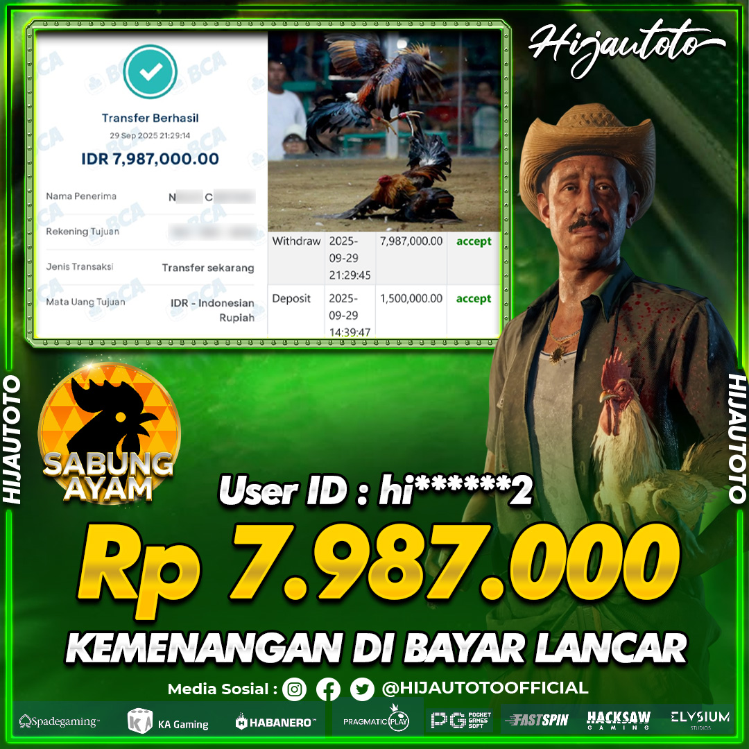 HIJAUTOTO juga menyediakan permainan sabung ayam online dengan sistem taruhan transparan dan live streaming langsung. Rasakan keseruan bertaruh dalam suasana pertandingan yang nyata dan dapatkan kesempatan menang yang adil.